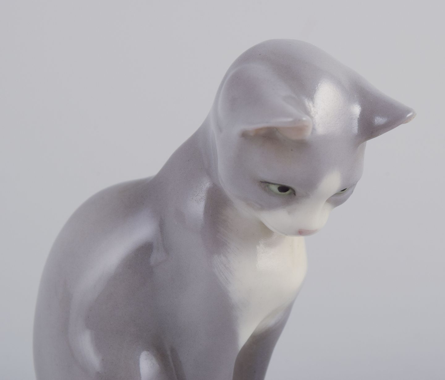 Royal Copenhagen. Porcelain figurine of a sitting cat.
