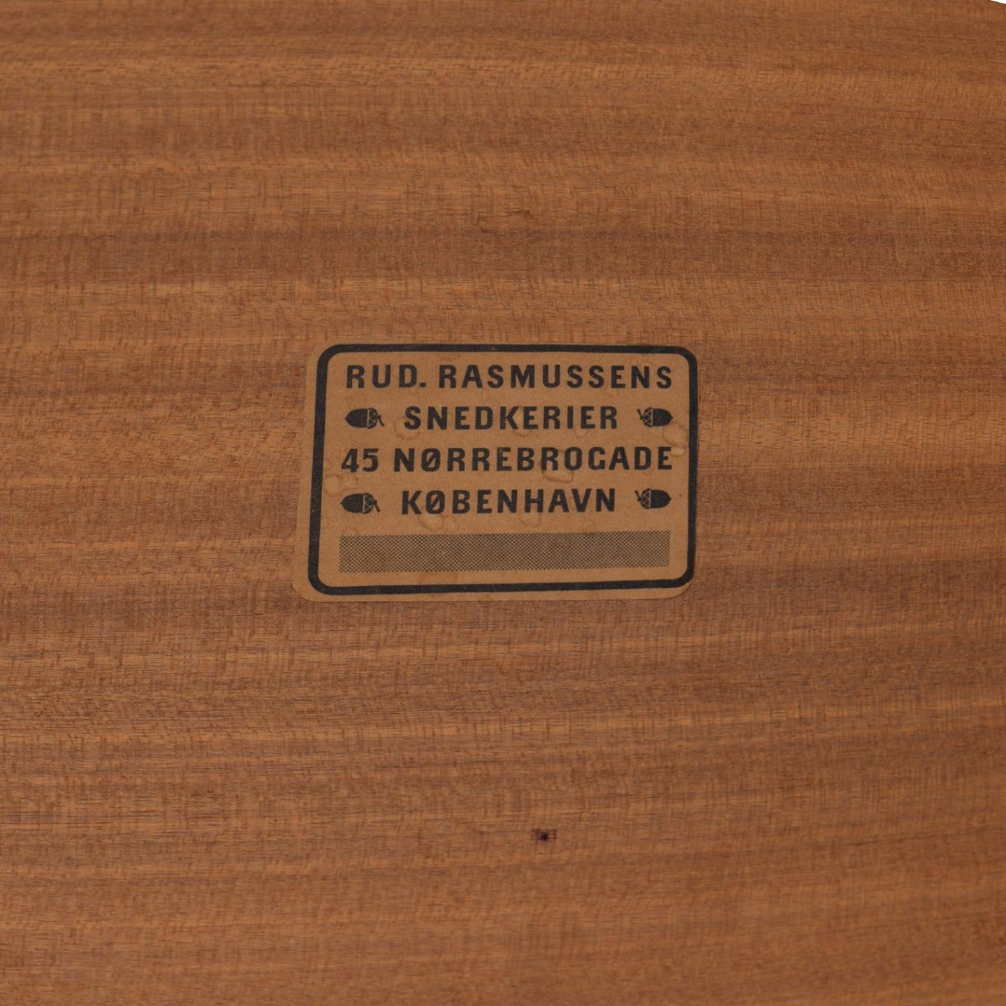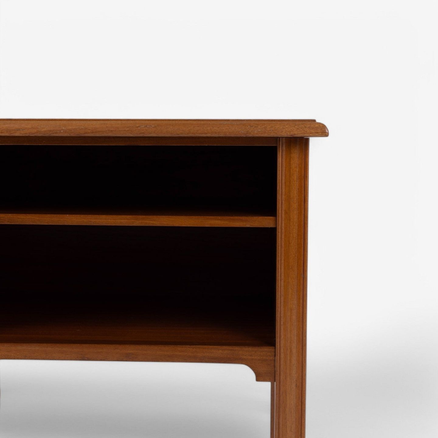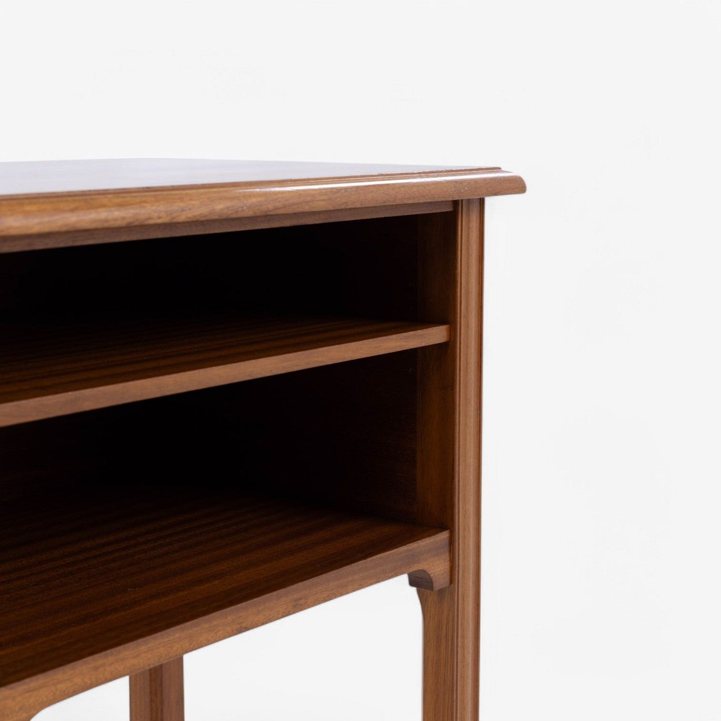 Sidebord i lakeret mahogni med underliggende hylde. Mærke fra producent.