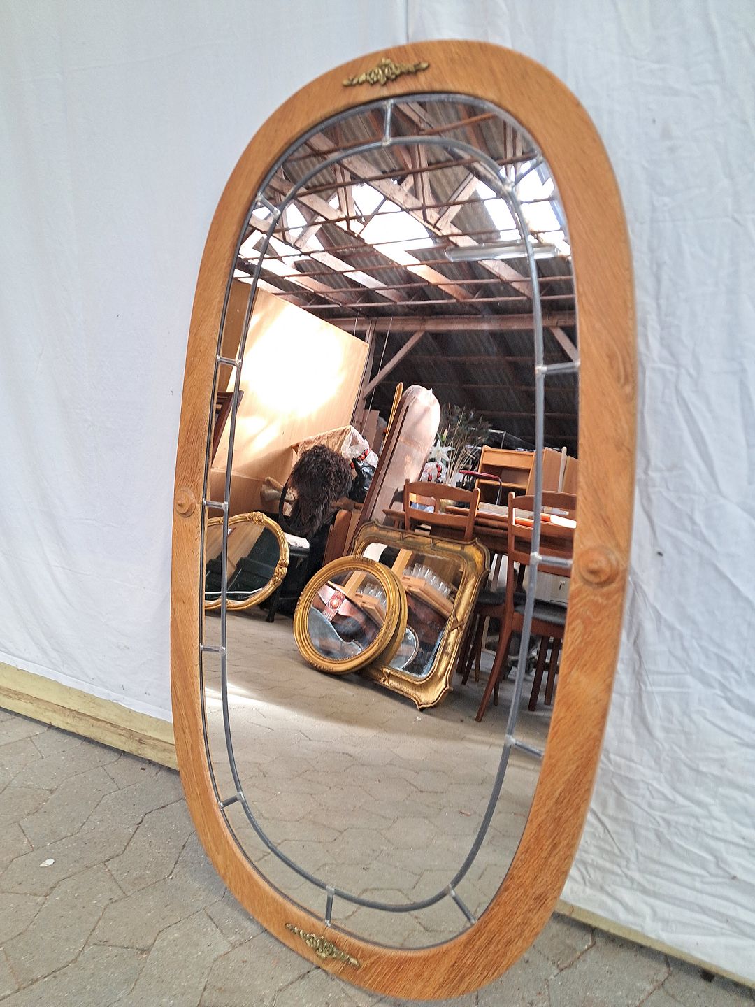 Spejl i massivt egetræ, fra 1980erne.