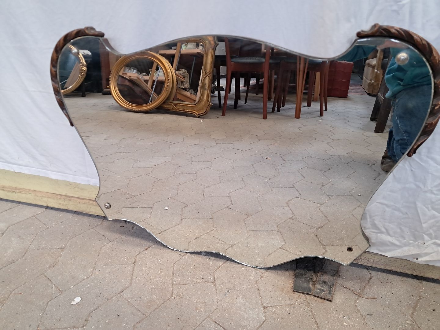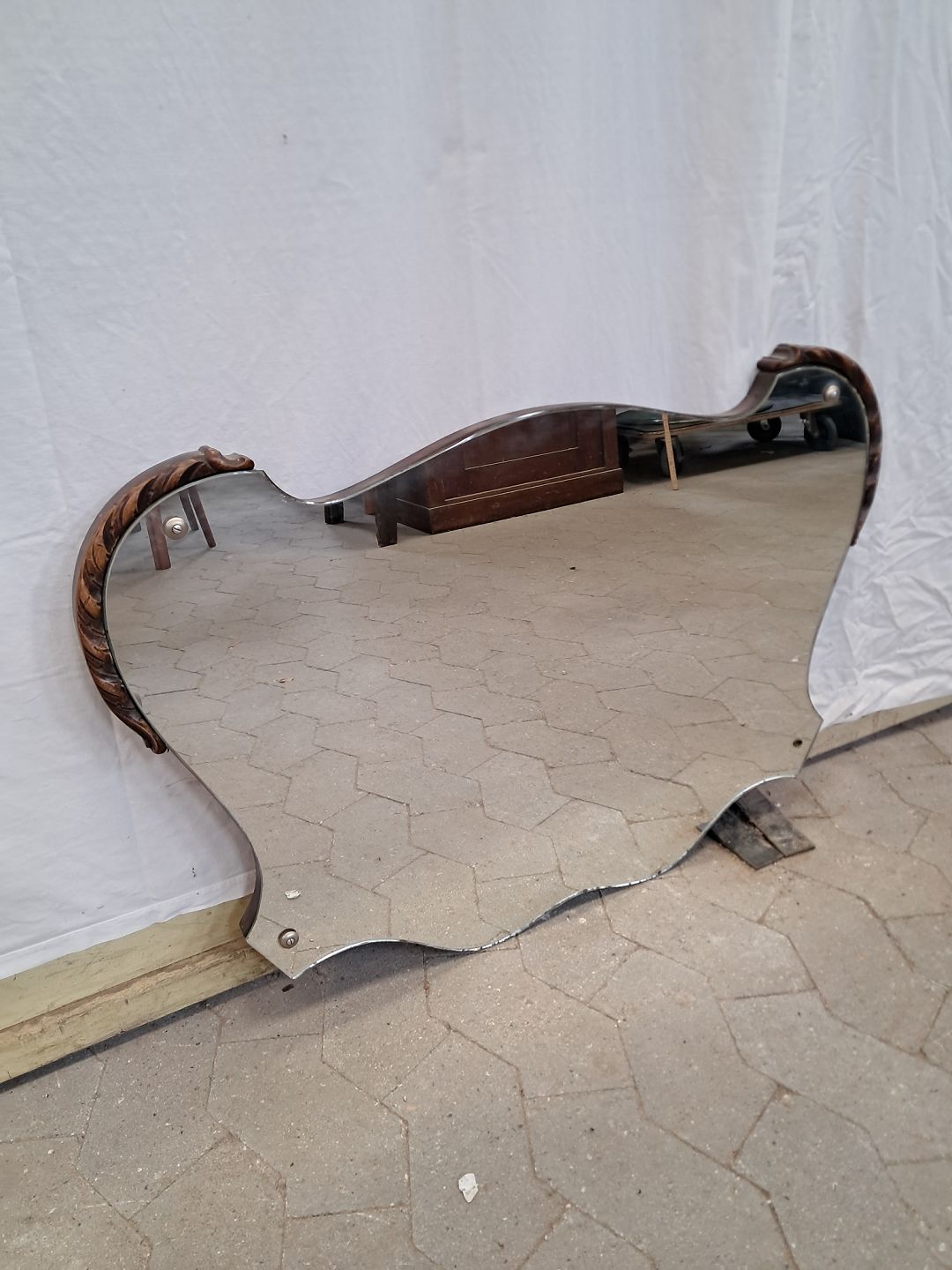 Spejl med pynt i birketræ, fra 1930erne.