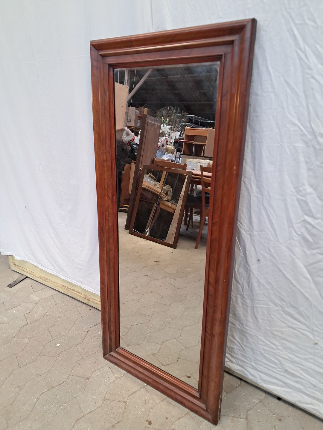 Spejl i fineret mahogni, frta 1900erne.