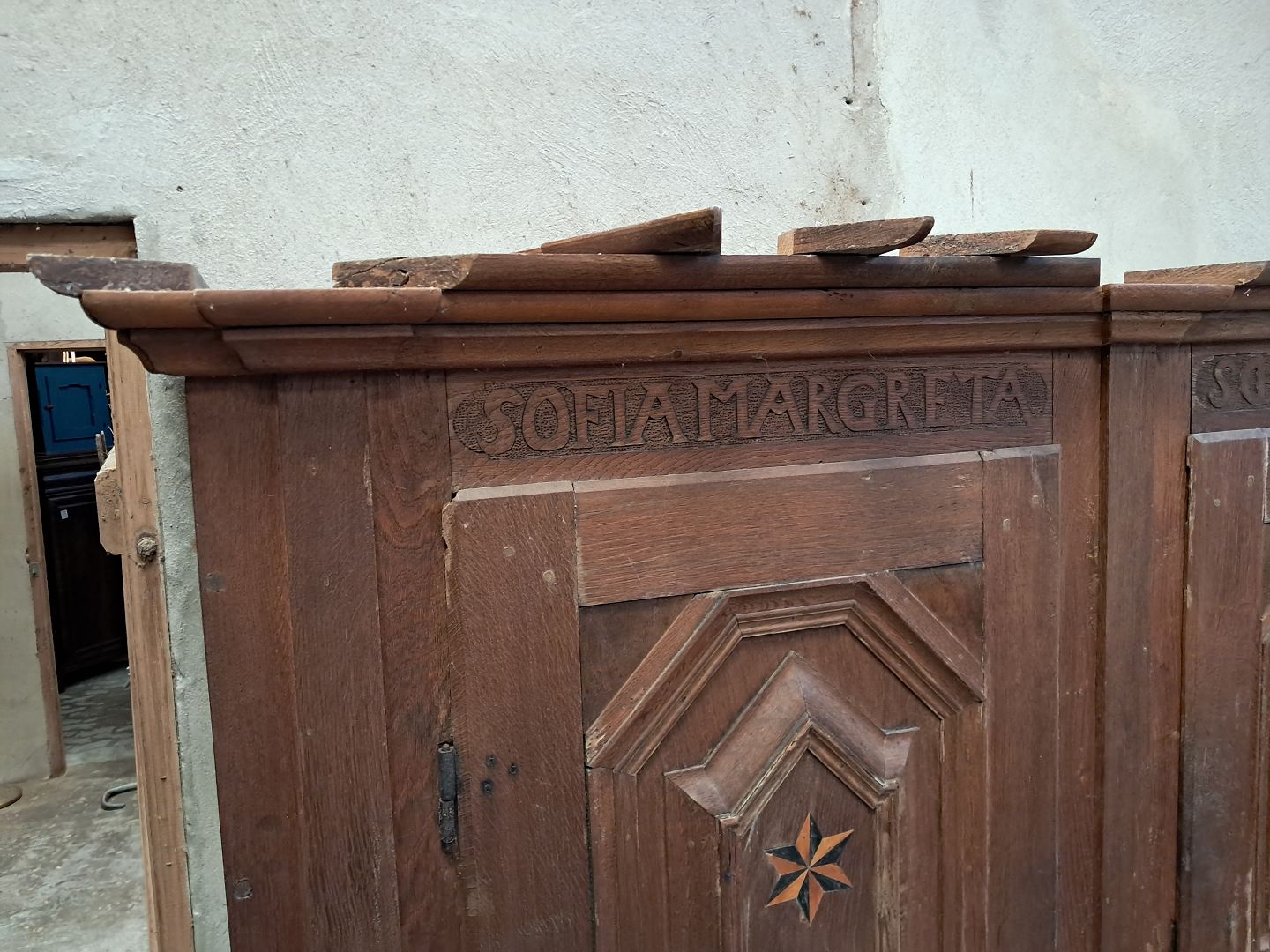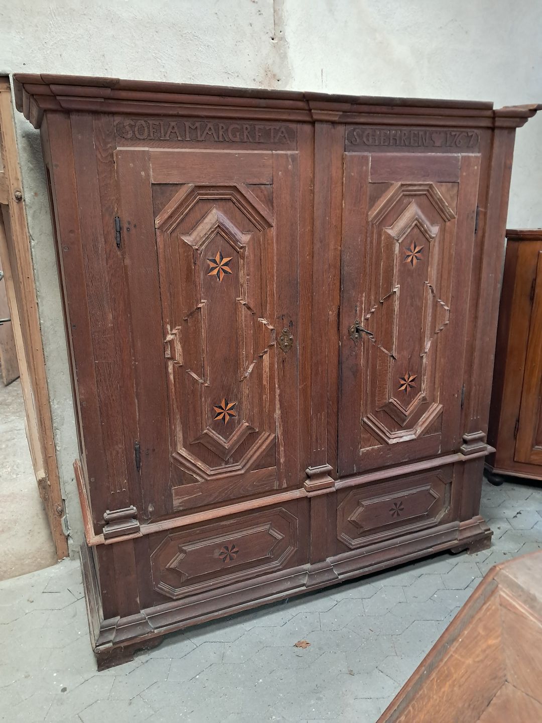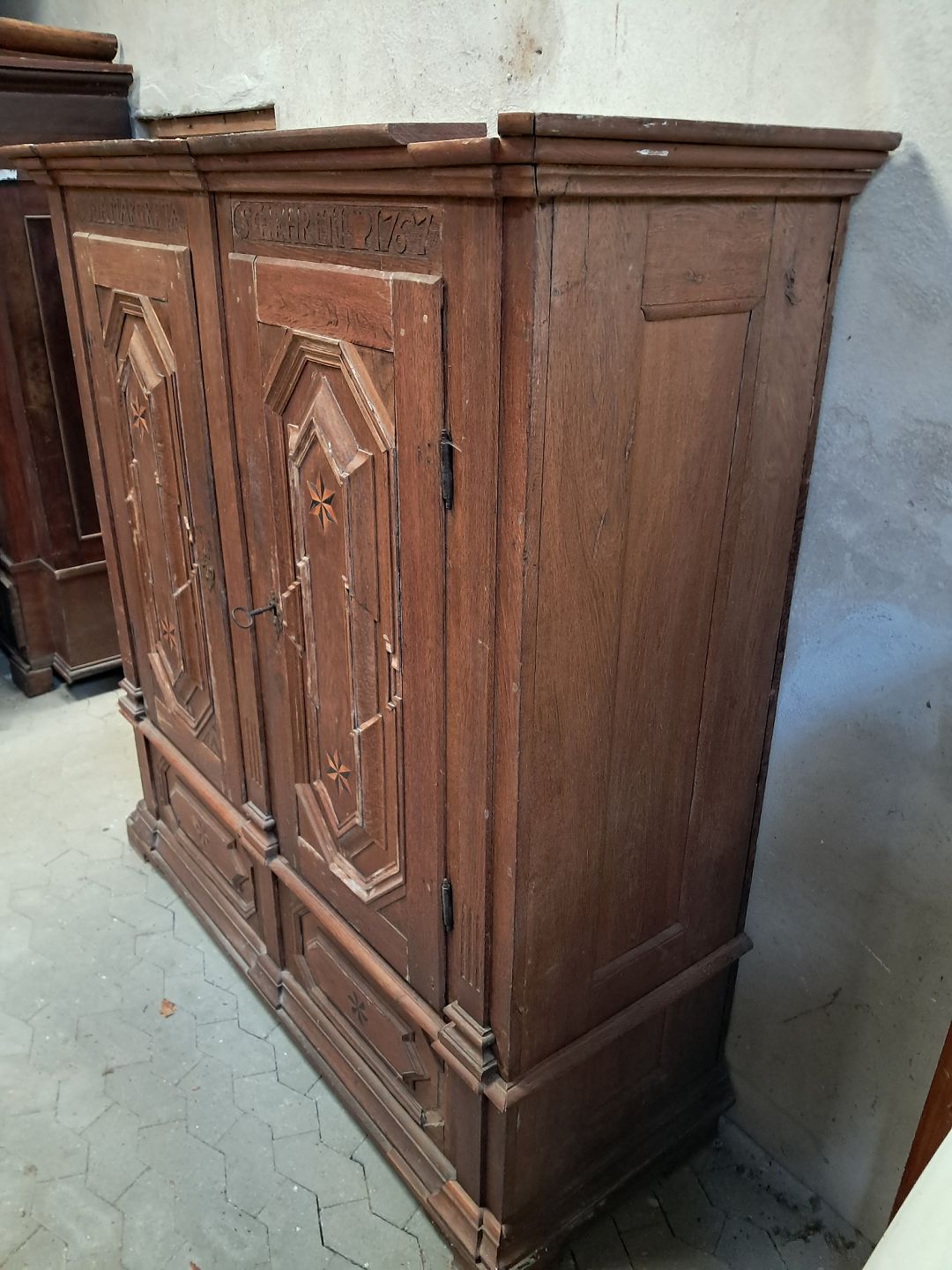 Skab i massivt egetæ, fra år 1767.