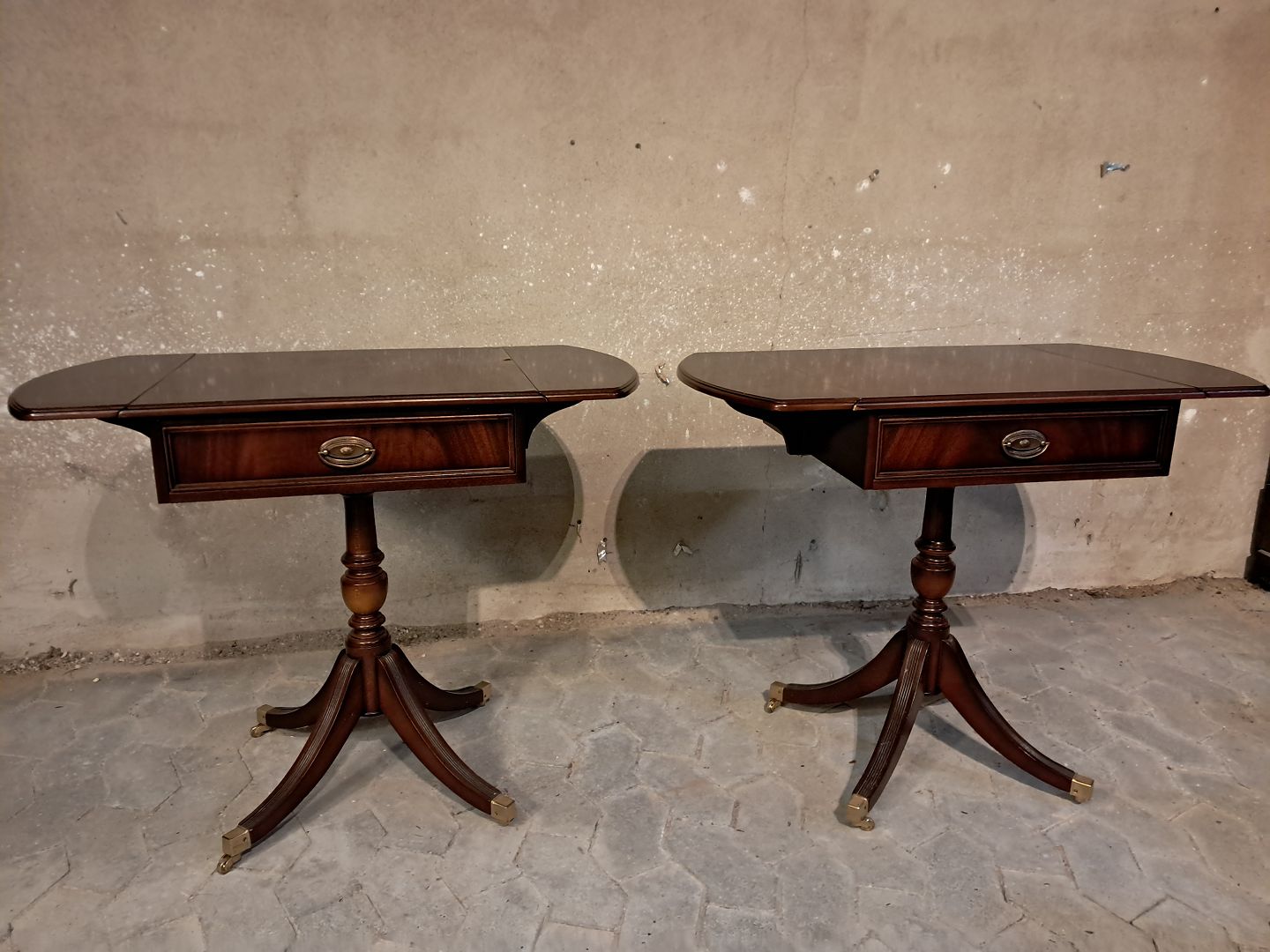 2 Lampeborde i fineret mahogni, frs 1980erne.