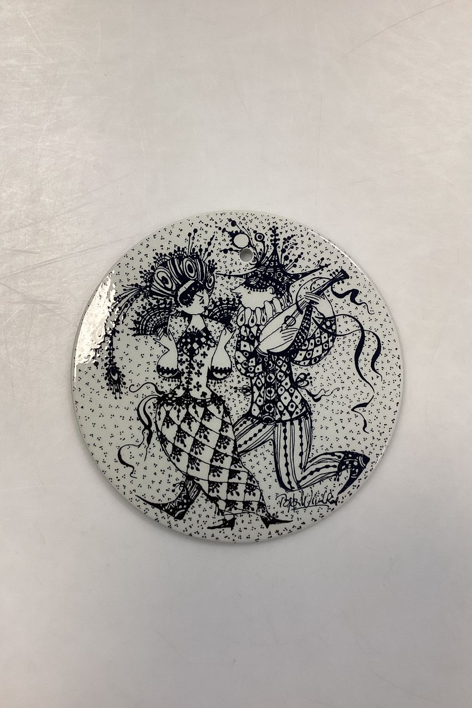 Månedsplatte i fajance for februar MASKERADE. Lavet specielt til Københavns Amts Sygehus 1972. Designet af Bjørn Wiinblad for Nymølle. I perfekt stand. Fabriksmærket på bagsiden. Mål: 15 cm (5.90 inch.)