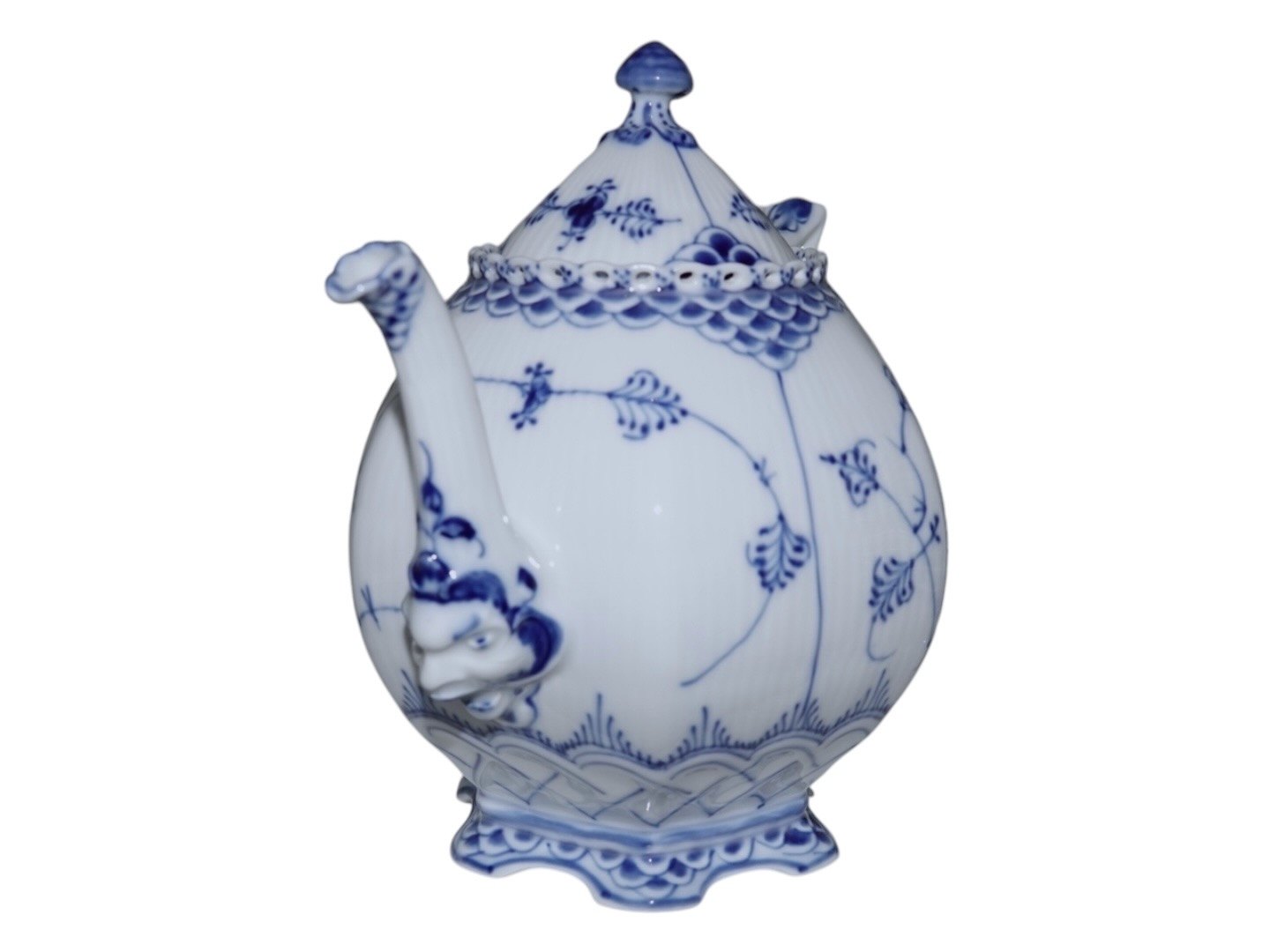 Royal Copenhagen Blue Fluted Full Lace, teapot with devils heads. The lid is a little more dark in the blue colour than the pot.
