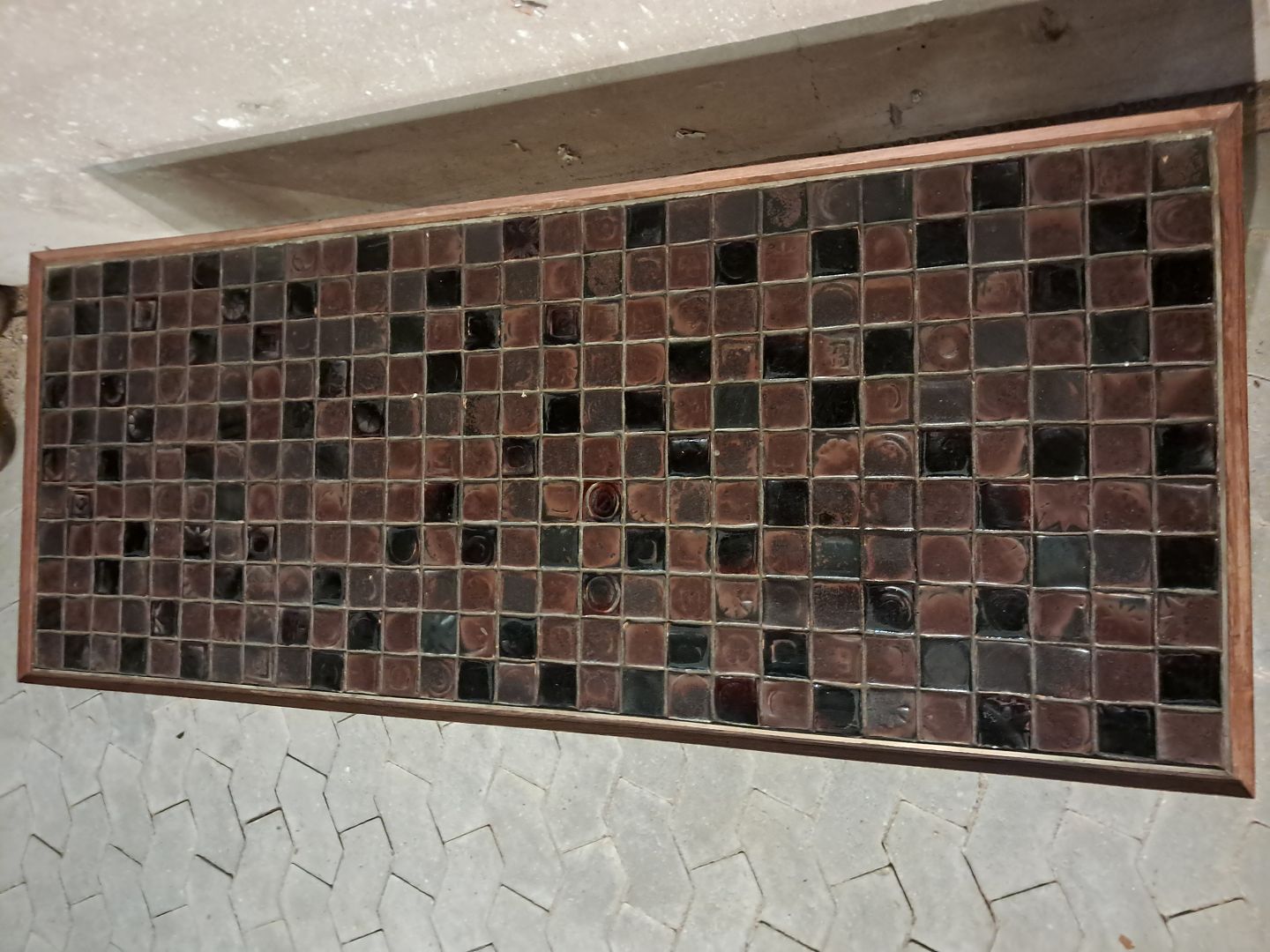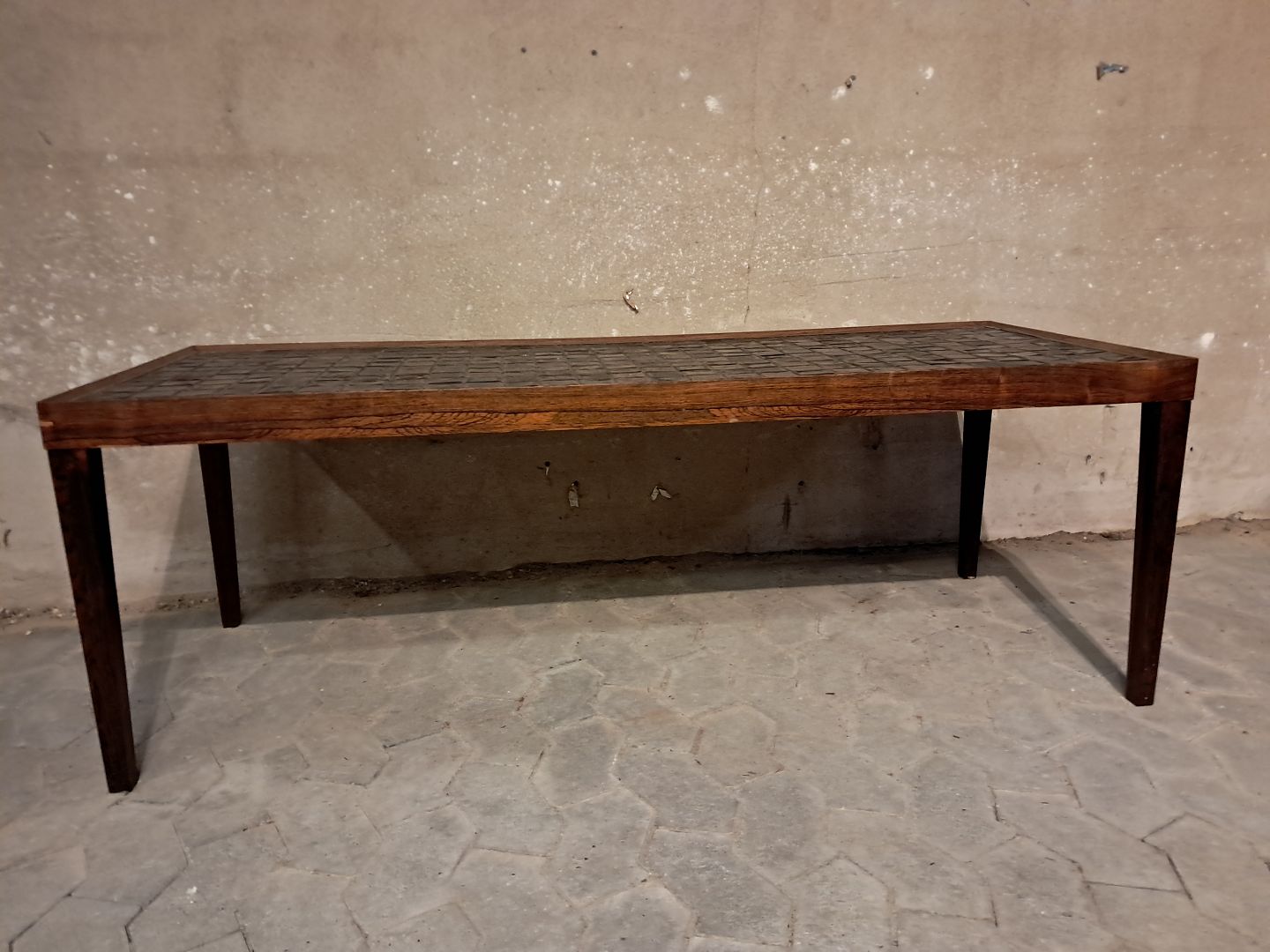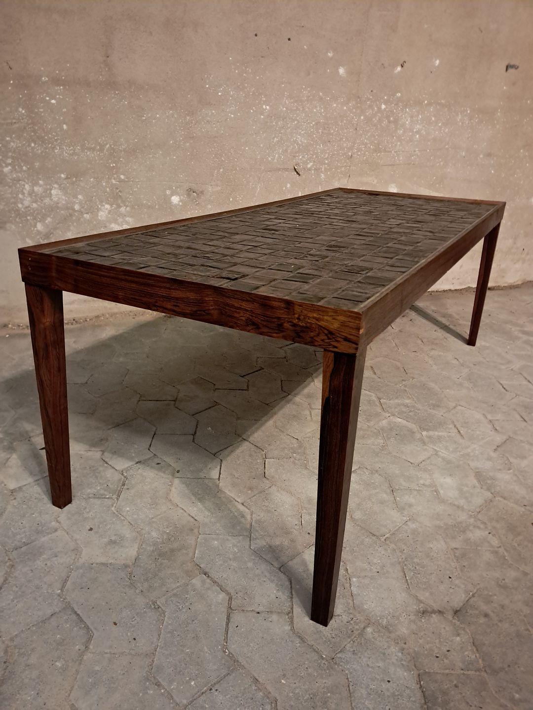 Sofabord i fineret palisander og kakler, fra 1960erne.