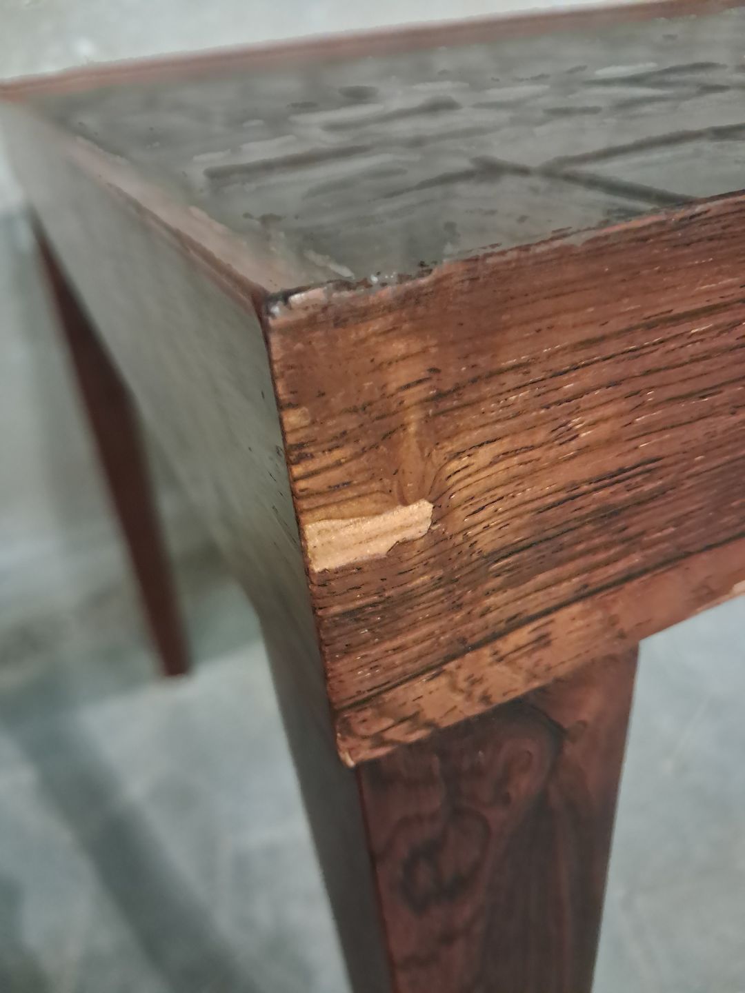Det har brugsspor og en lille finer defekt.