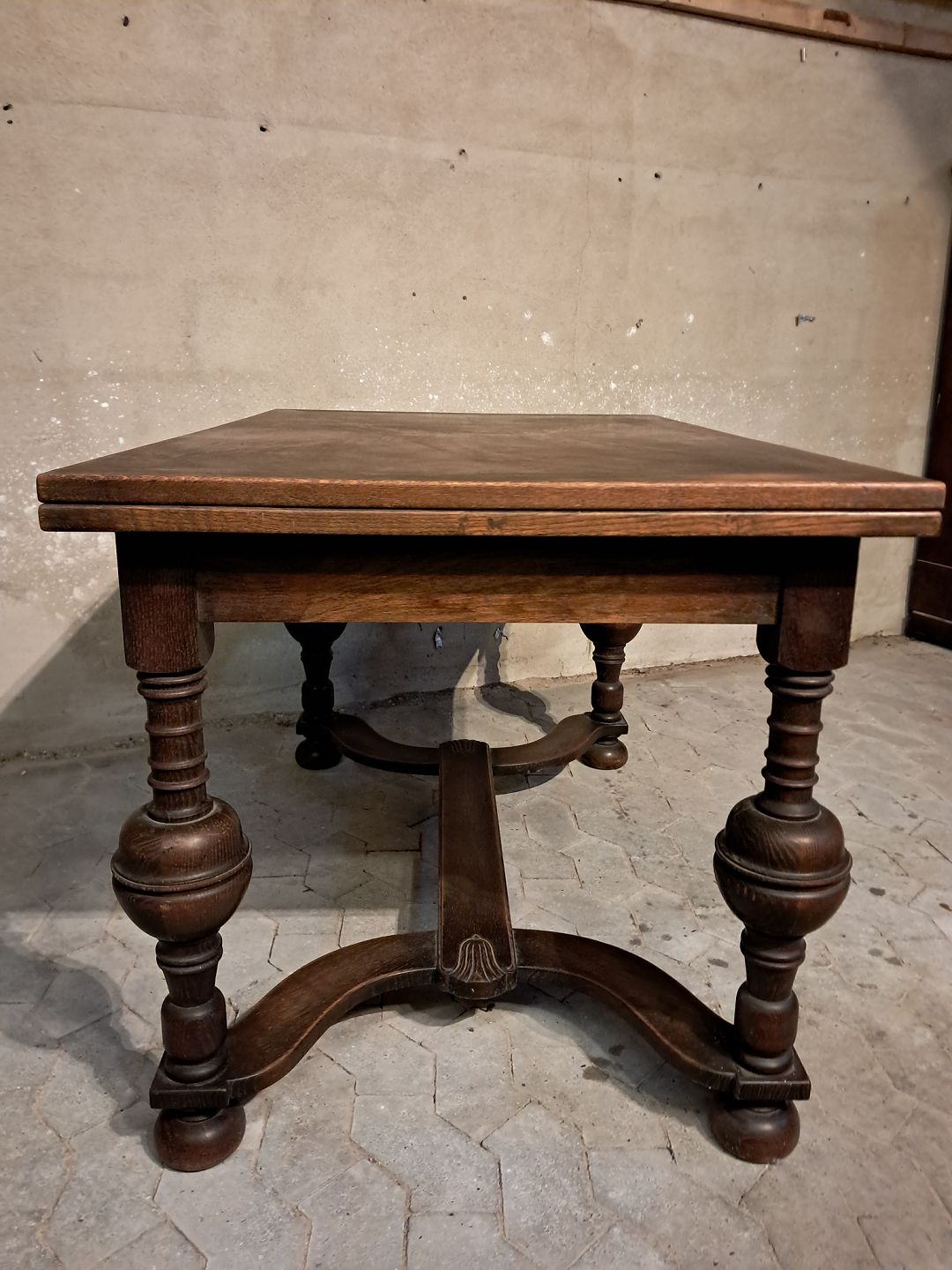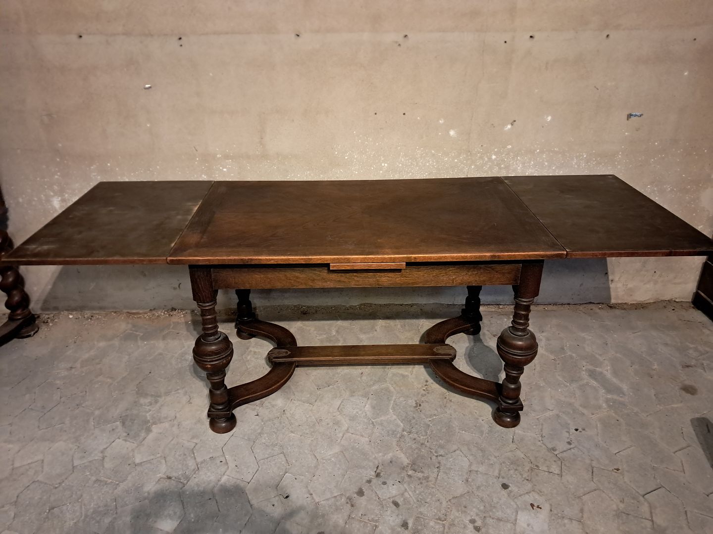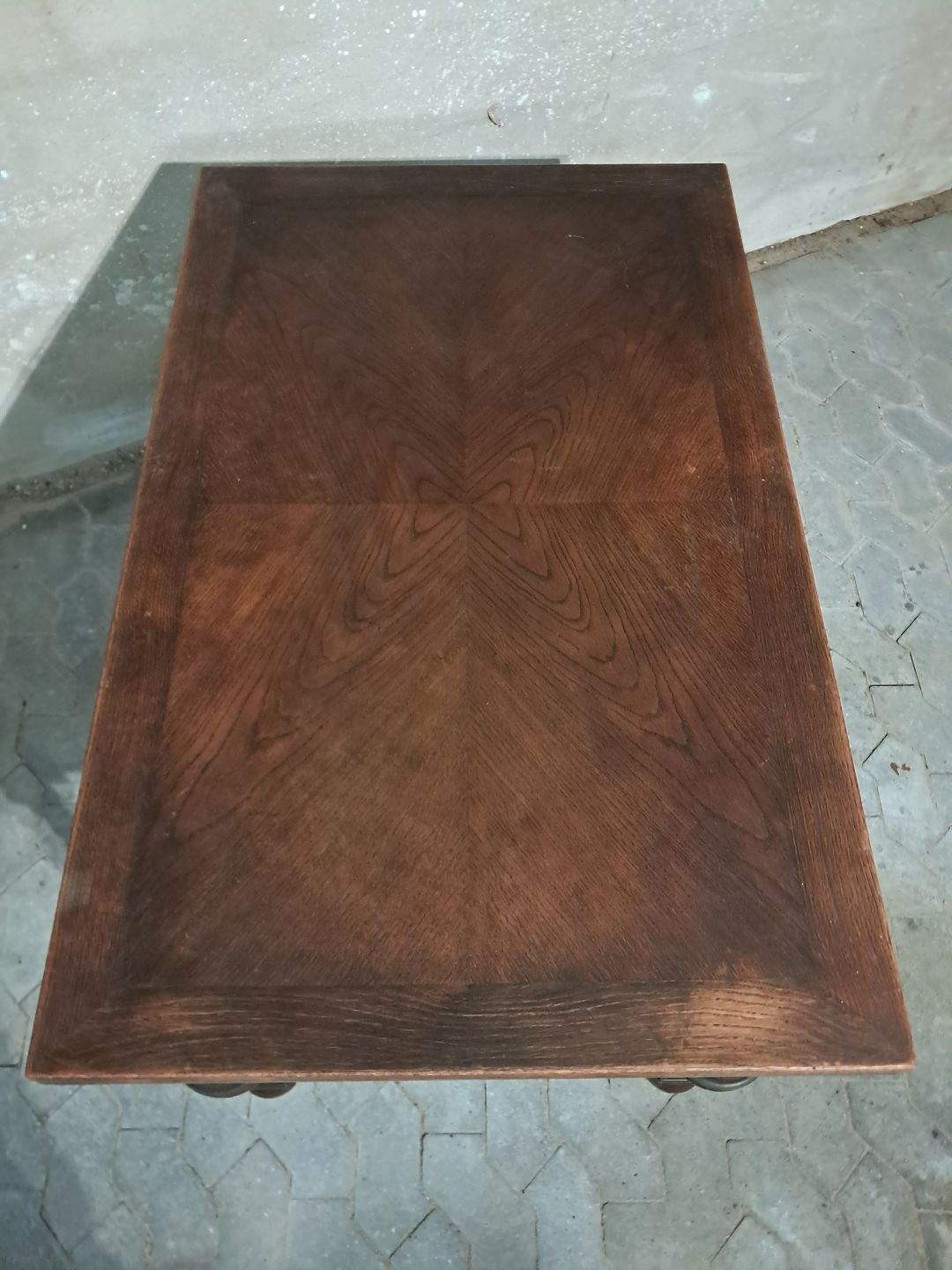 Bord i fineret egetræ med hollandsk udtræk, fra 1930erne.