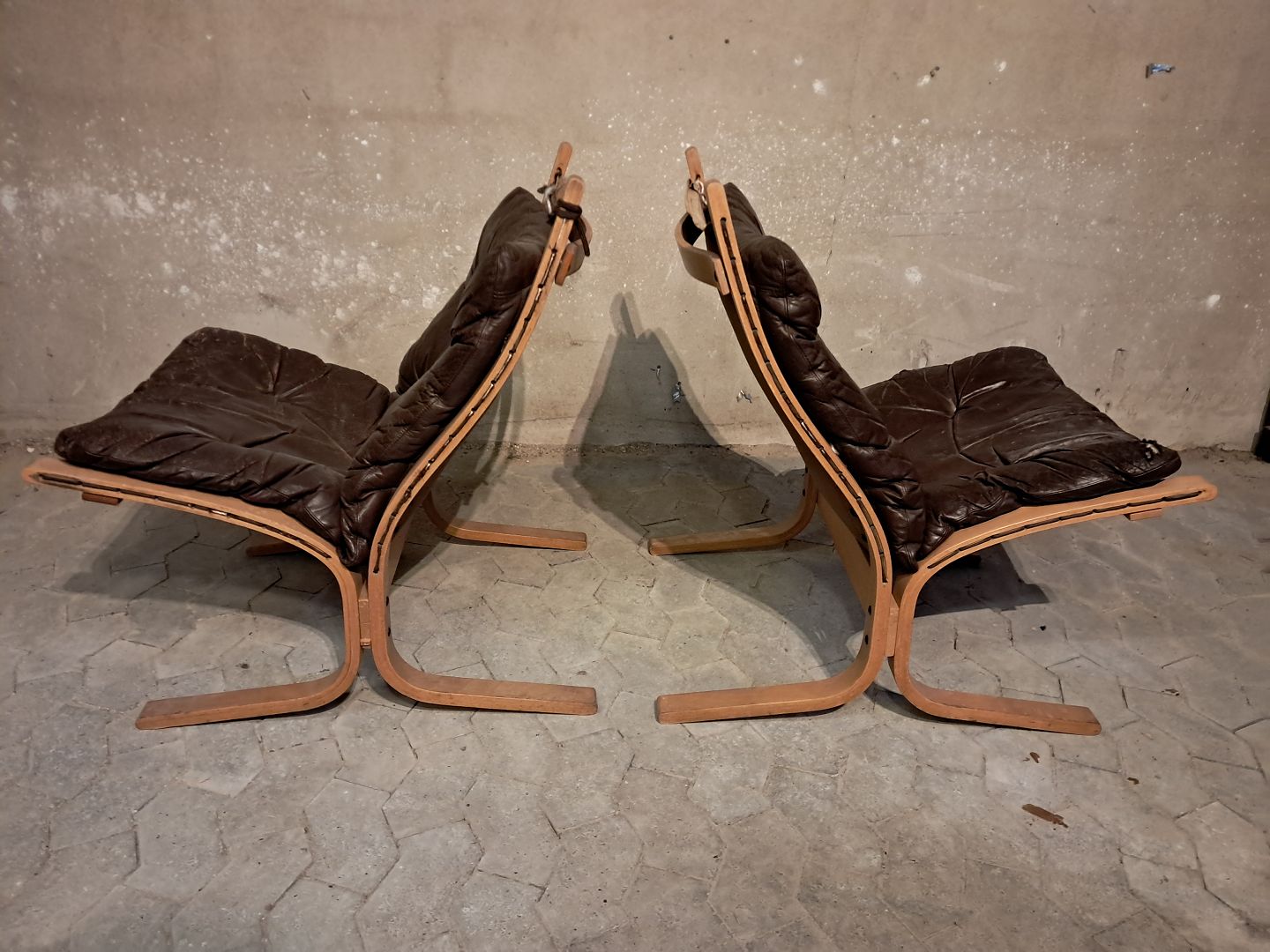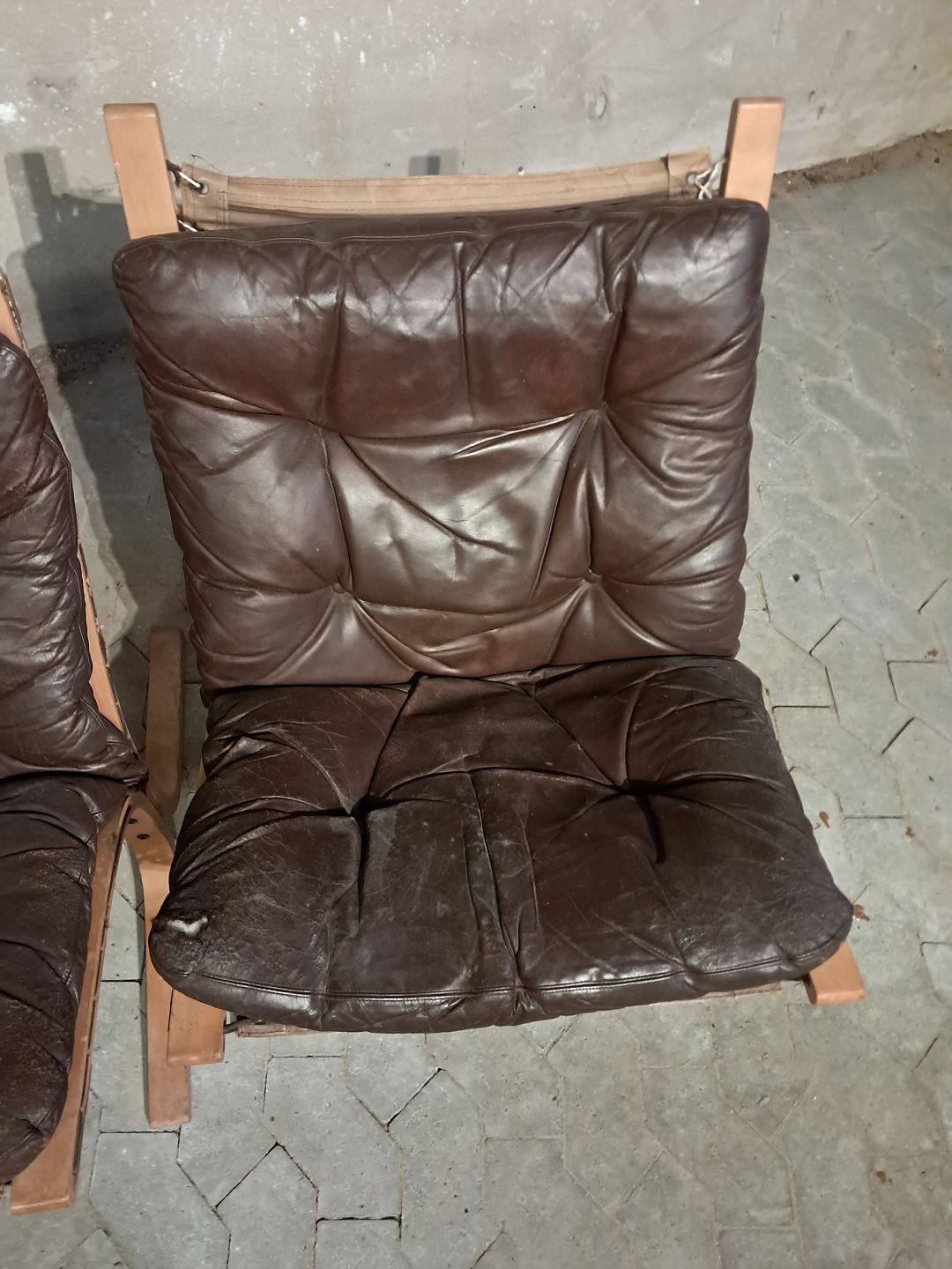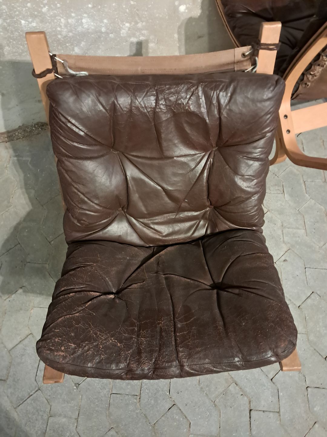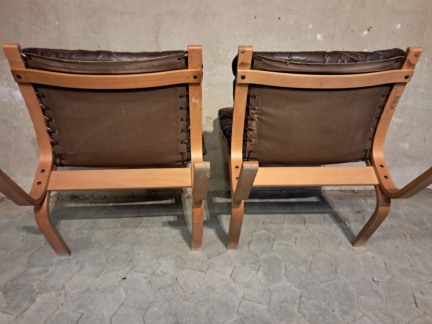 2 Lænestole i bøgetræ og læder, fra 1980erne.