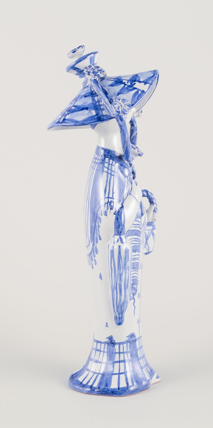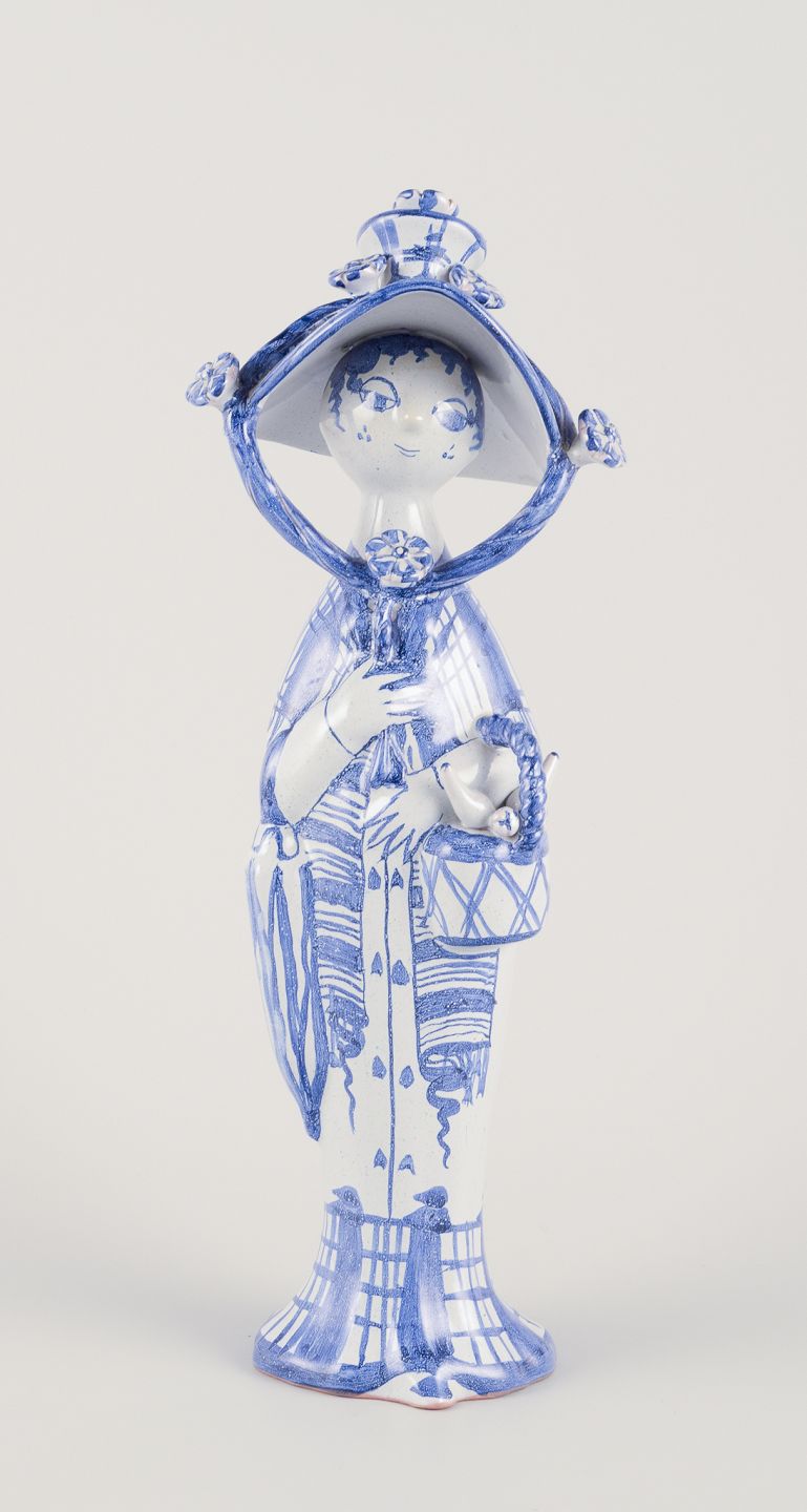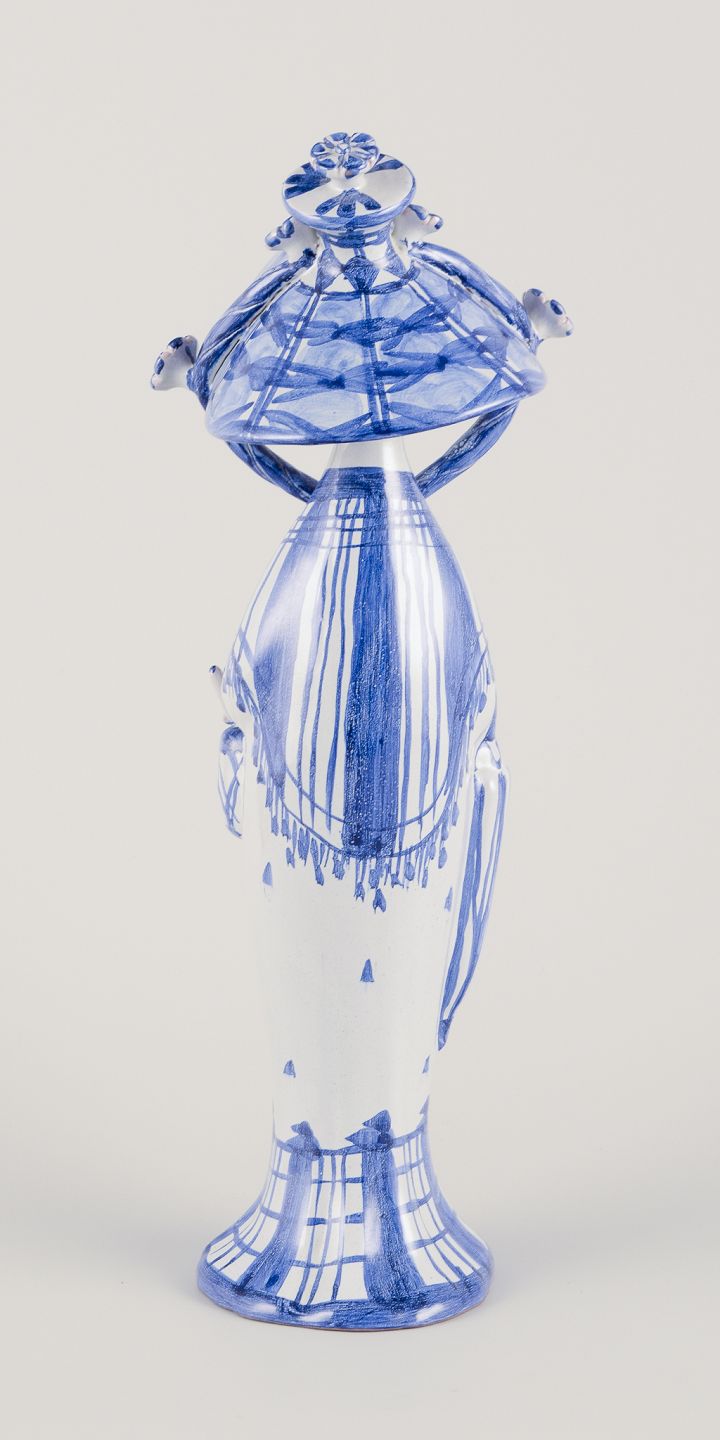 Bjørn Wiinblad (1918-2006). "Efterår" fra serien "De fire årstider", figur i blåglaseret lertøj.