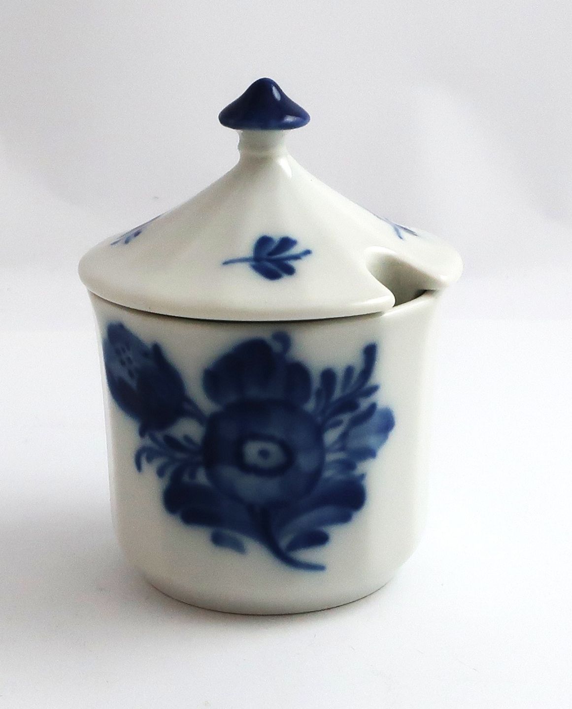 Royal Copenhagen. Blå blomst, kantet. Sennepskrukke. Model 8566. Højde 6 cm. (2 sortering)