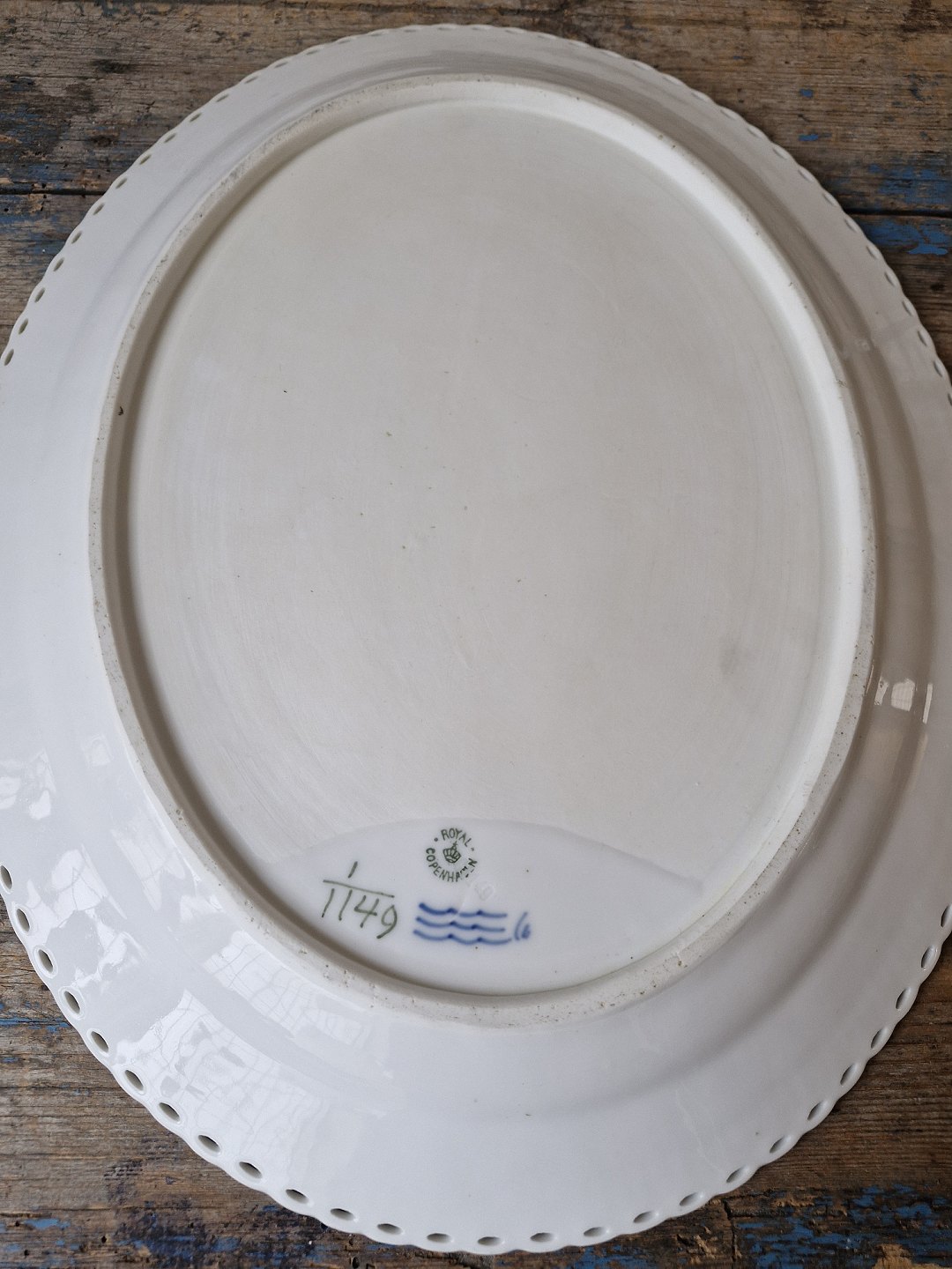 Royal Copenhagen Musselmalet helblonde stort helfladt fad