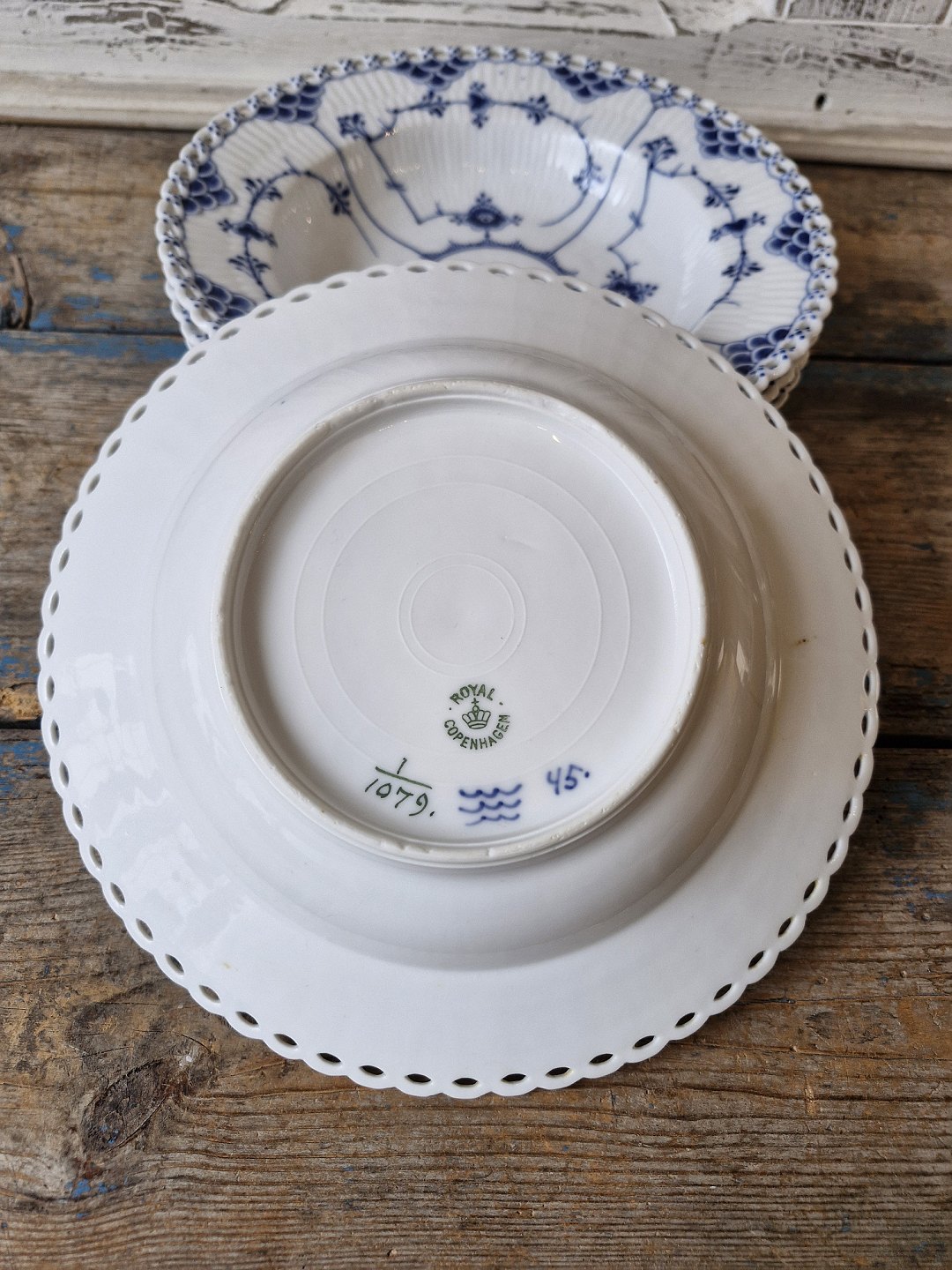 Royal Copenhagen Musselmalet helblonde dyb tallerken no. 1079 - 23 cm. 1898-1923
