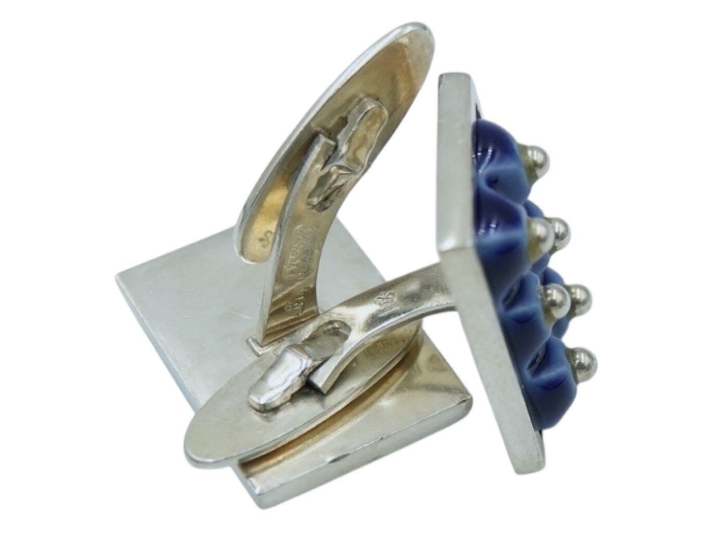 Royal Copenhagen i samarbejde med Anton Michelsen sterlingsølv og mørkeblåt porcelæn, par store manchetknapper