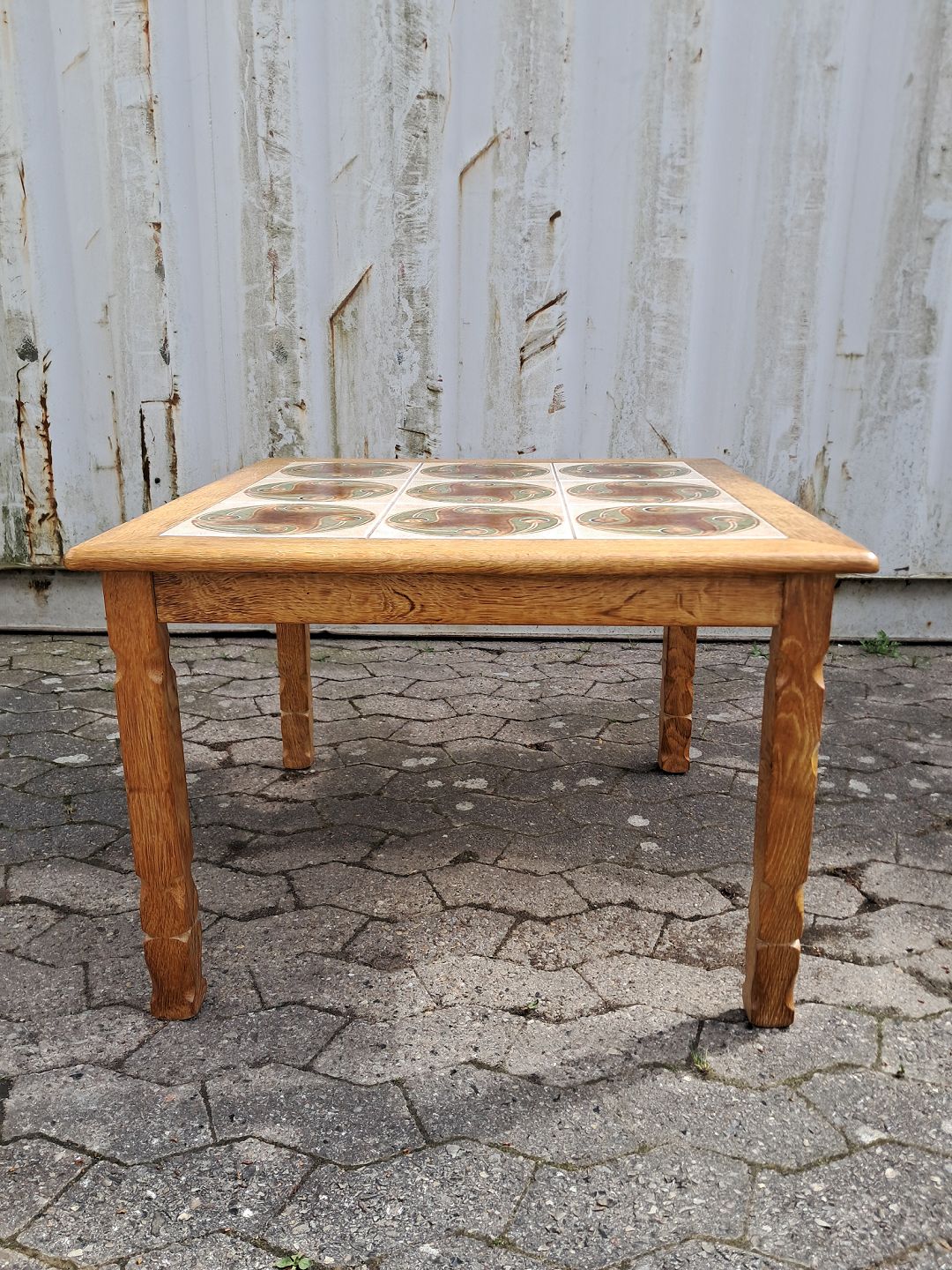 Sofabord i massivt egetræ med kakler, fra 1980erne.