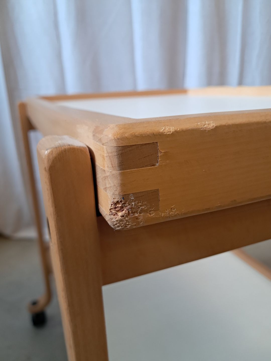 Rullebord i bøgetræ med vendbar bordplader, fra 1990erne.