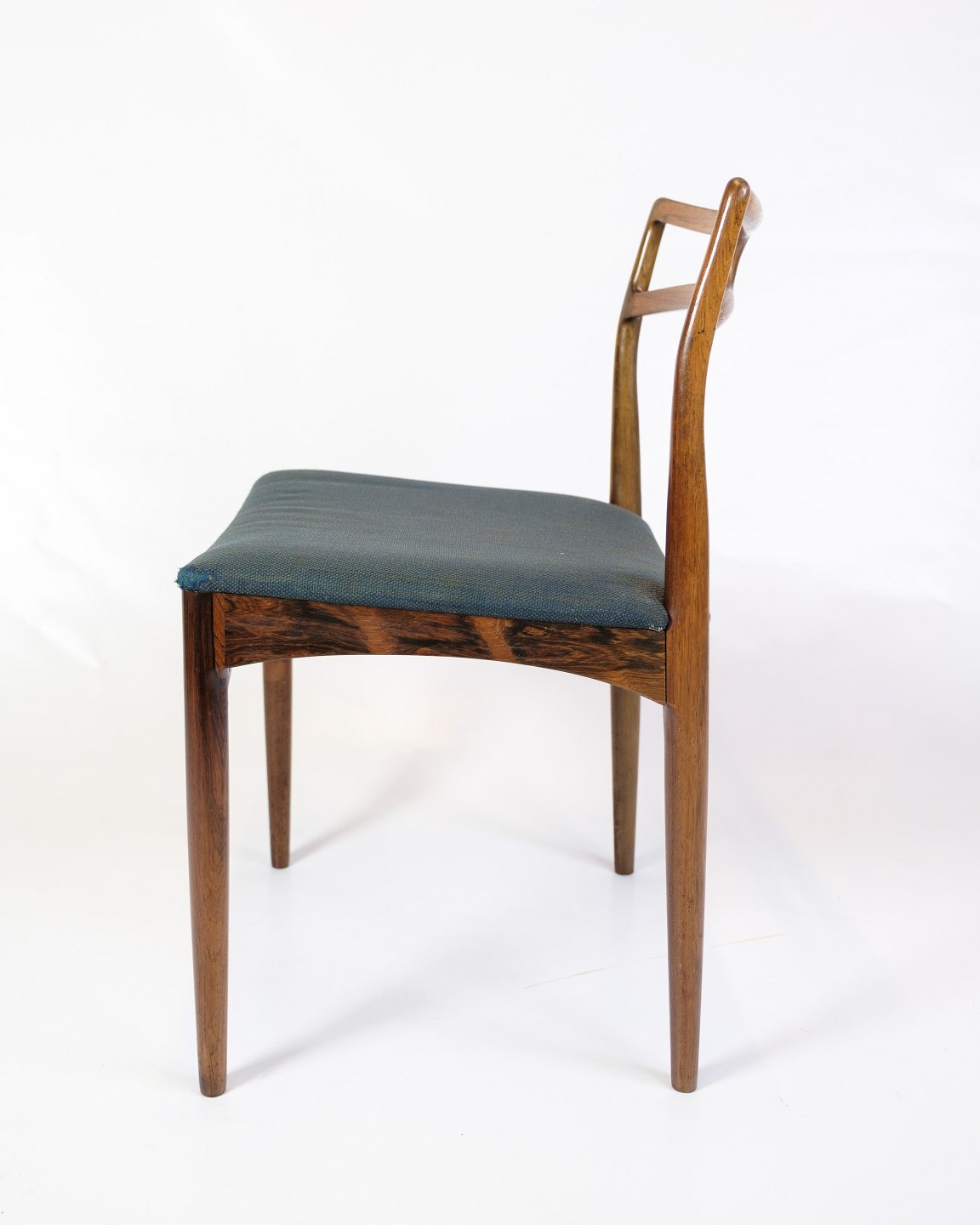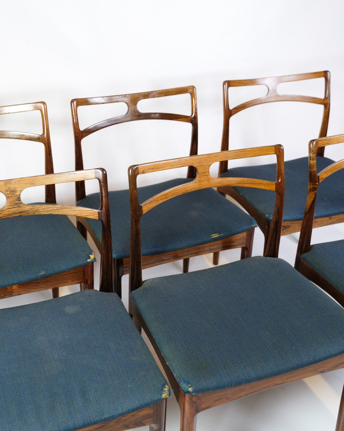 Set of 6 Dining Chairs - Model 94 - Rosewood & Blue Fabric - Johannes Andersen - Chr. Linneberg Furniture Factory - 1960s
