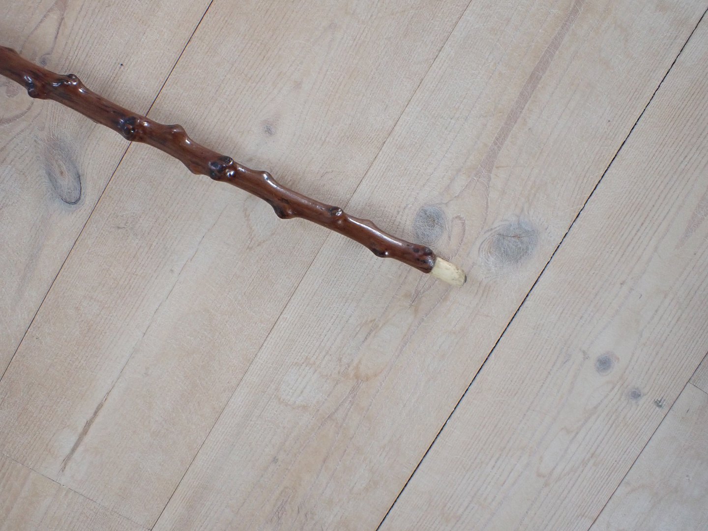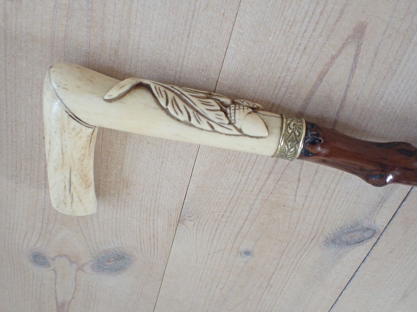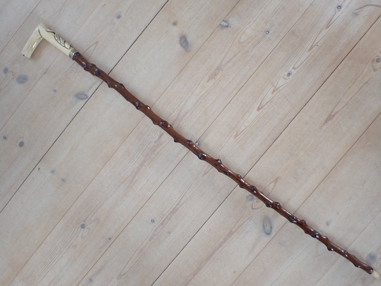 Tjørnestok med greb af udskåret ben.