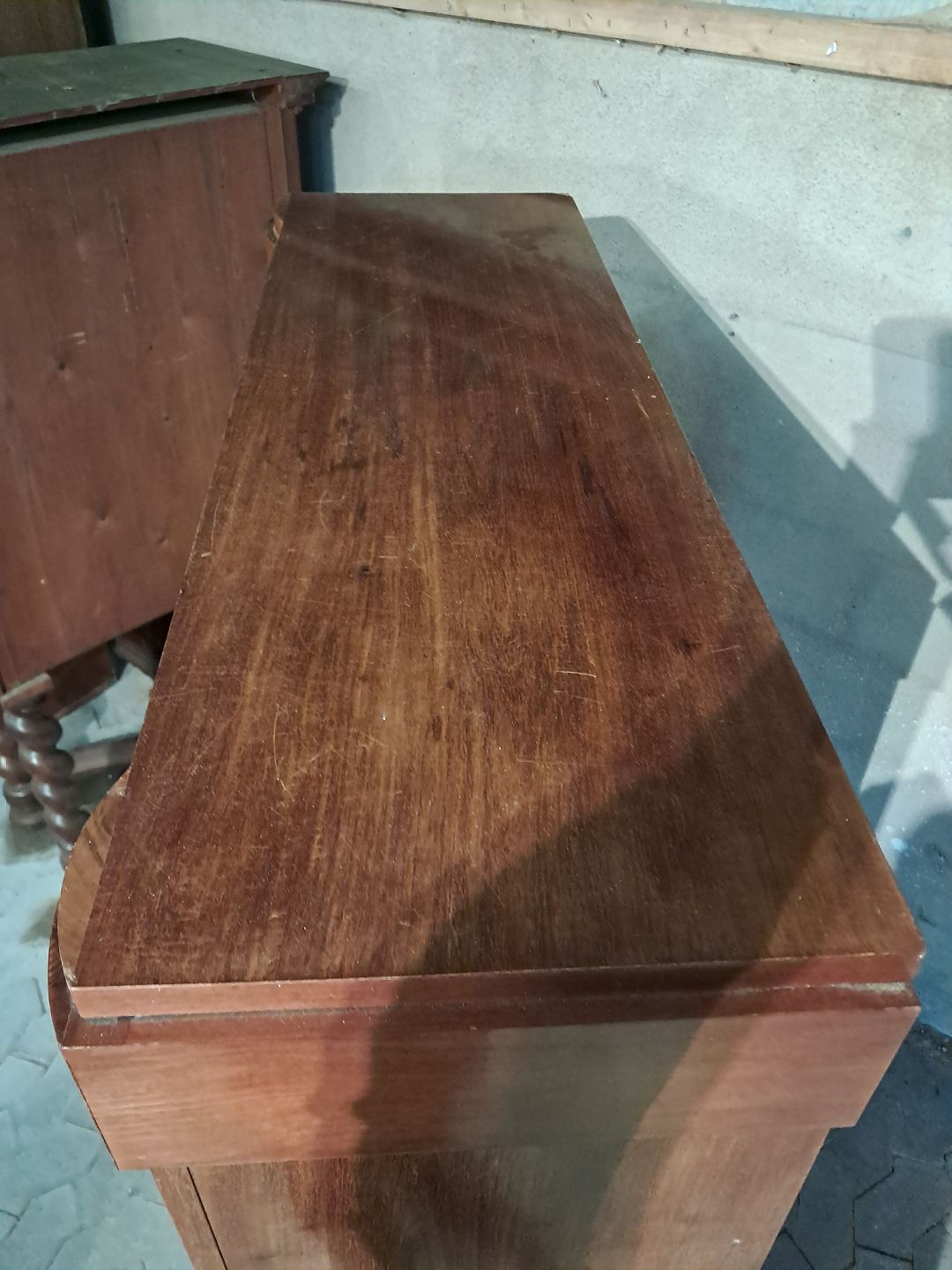 Det har brugsspor og mangler et prydstykke på venstre låge.