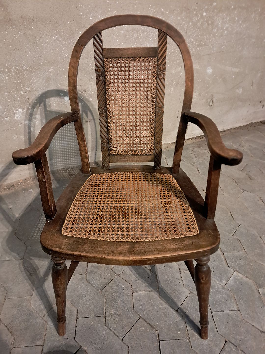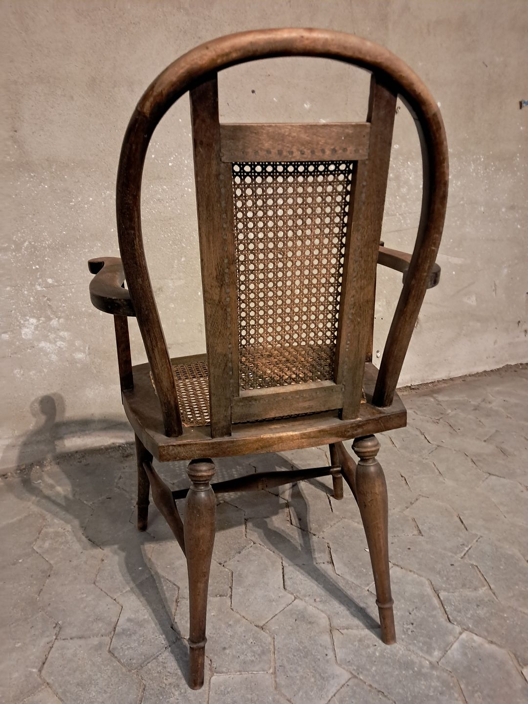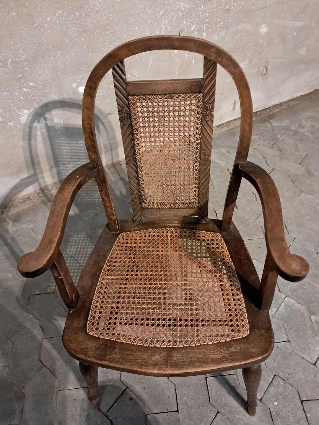 Armstol i massivt egetræ med rørflet, fra 1930erne.