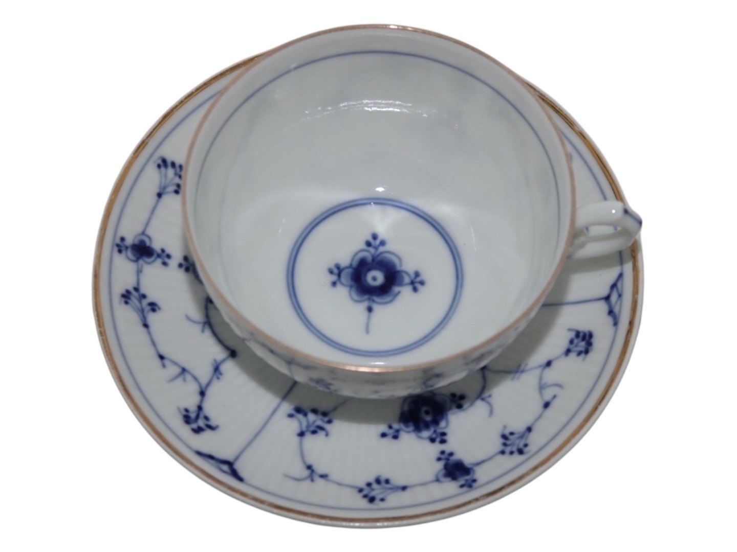 Bing & Grøndahl Musselmalet / Blåmalet Riflet med guldkant, chokoladekop med underkop.