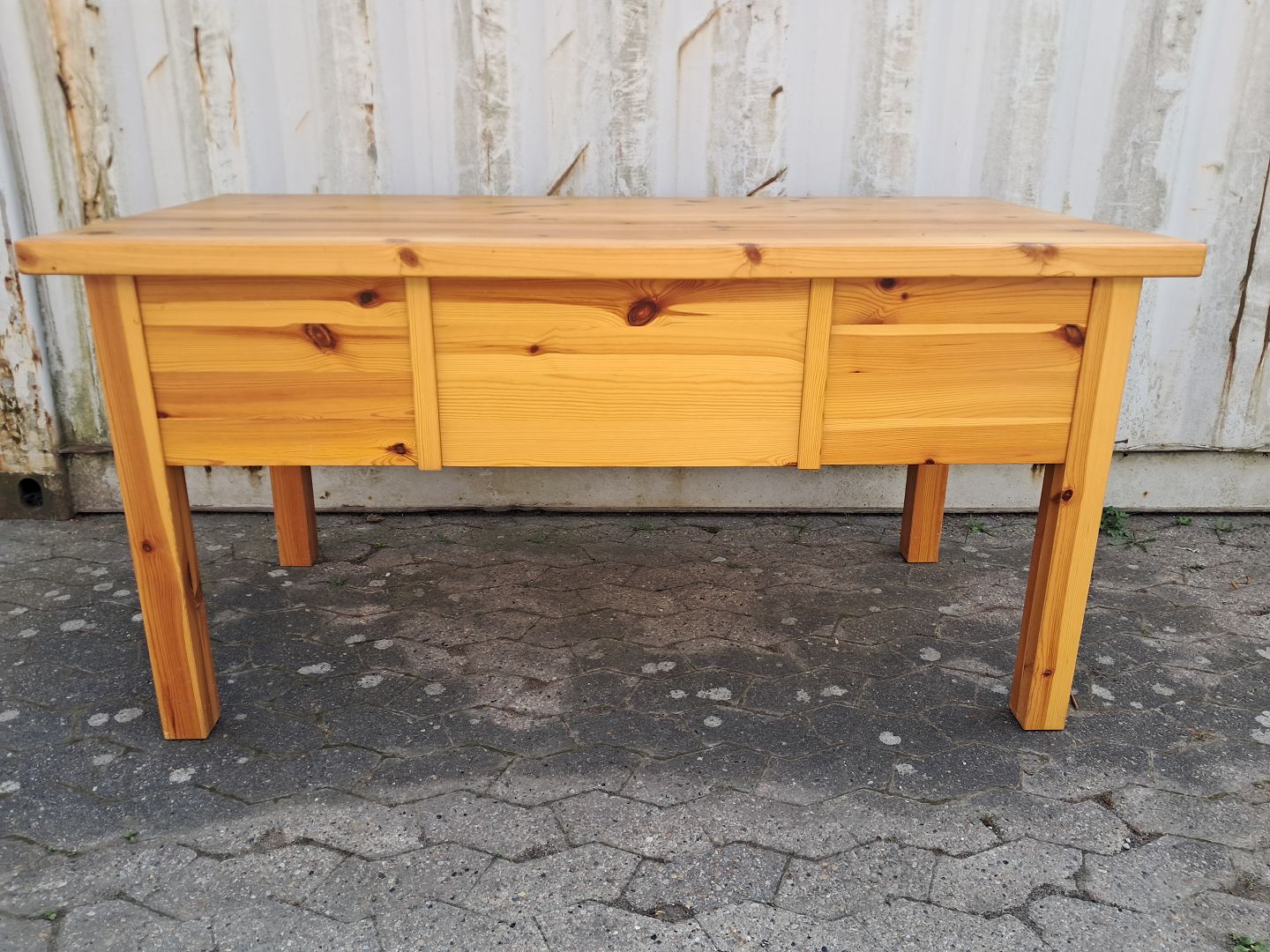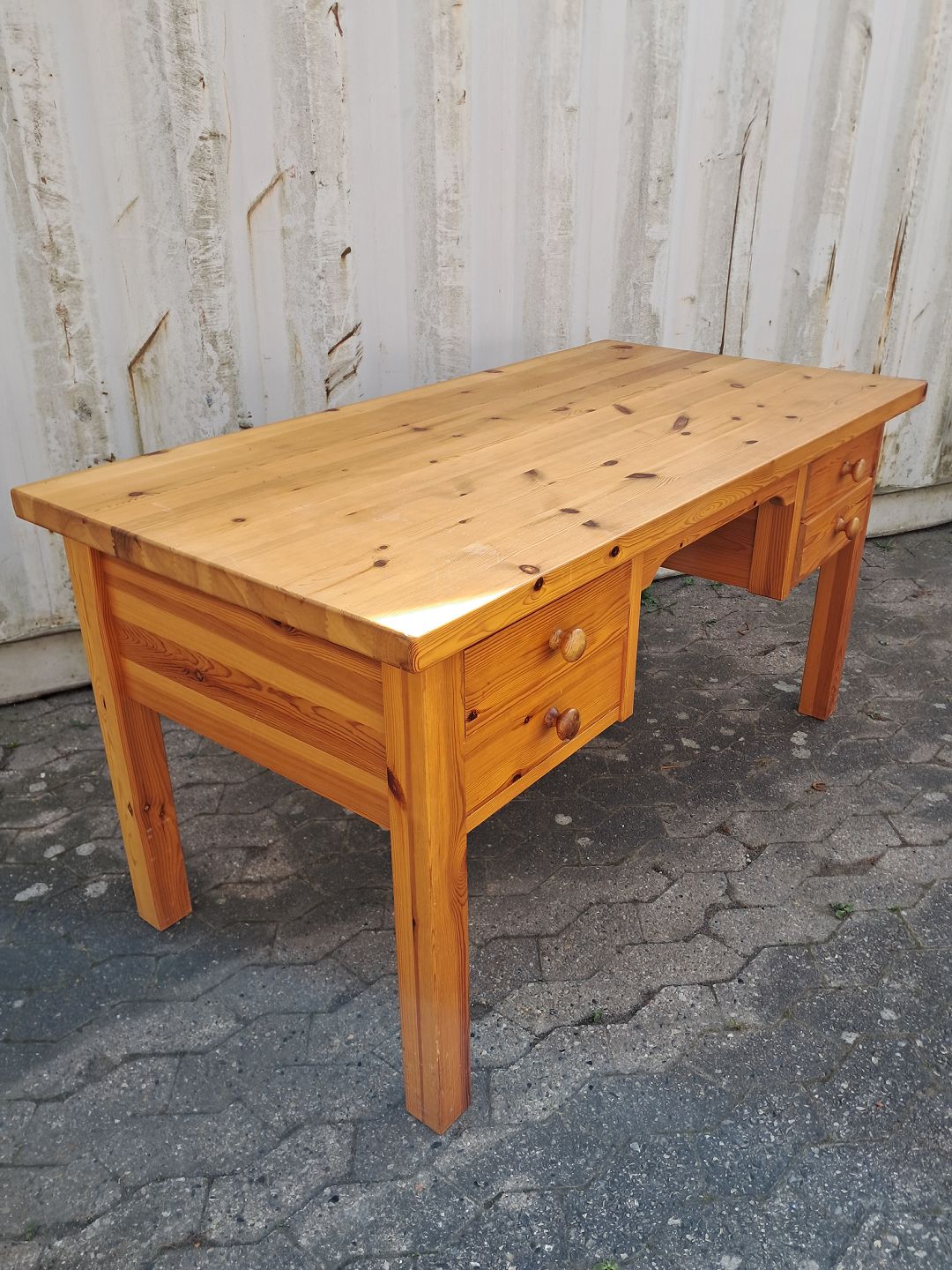 Skrivebord i massivt fyrretræ, fra 1980erne.