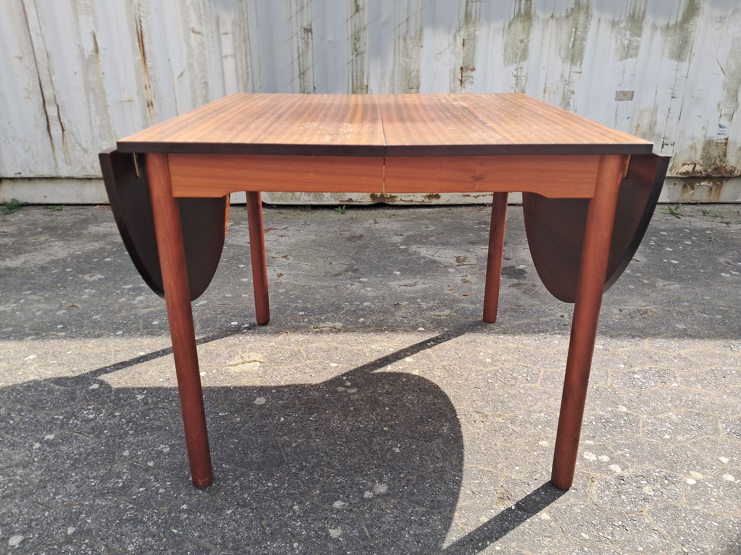 Bord i fineret mahogni med 2 klapper og 1 tillægsplade, fra 19890erne.