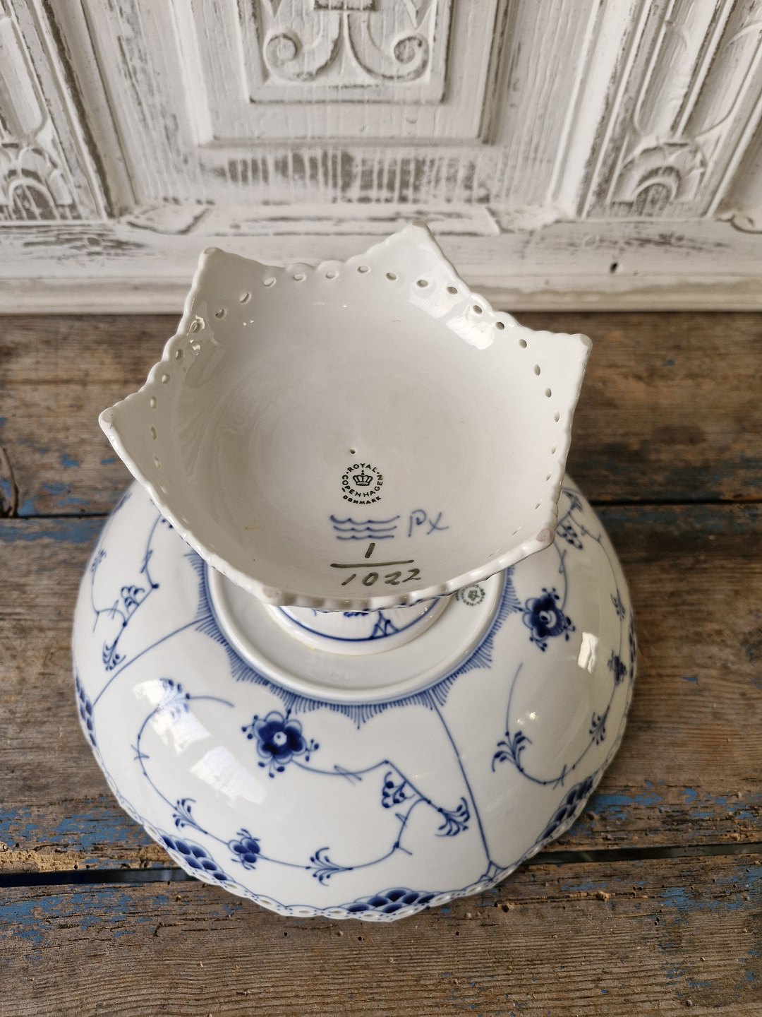 Royal Copenhagen Musselmalet helblonde stor opsats no. 1022