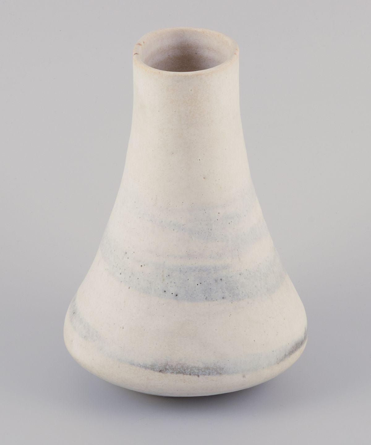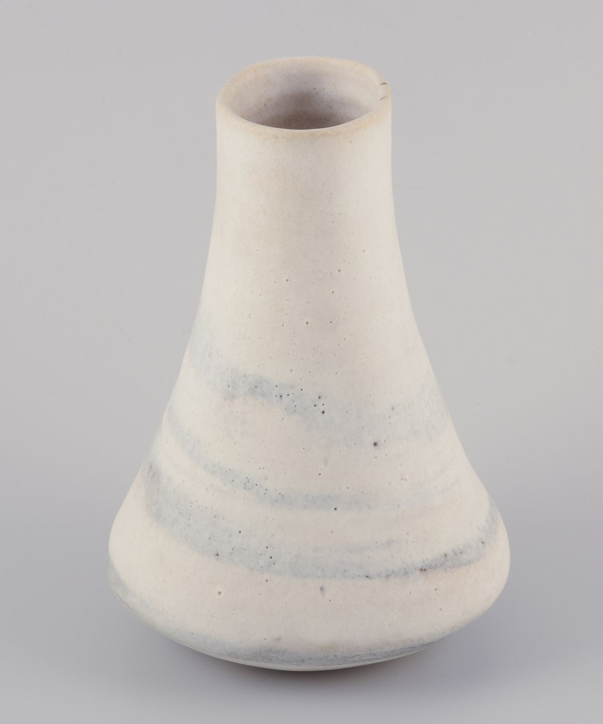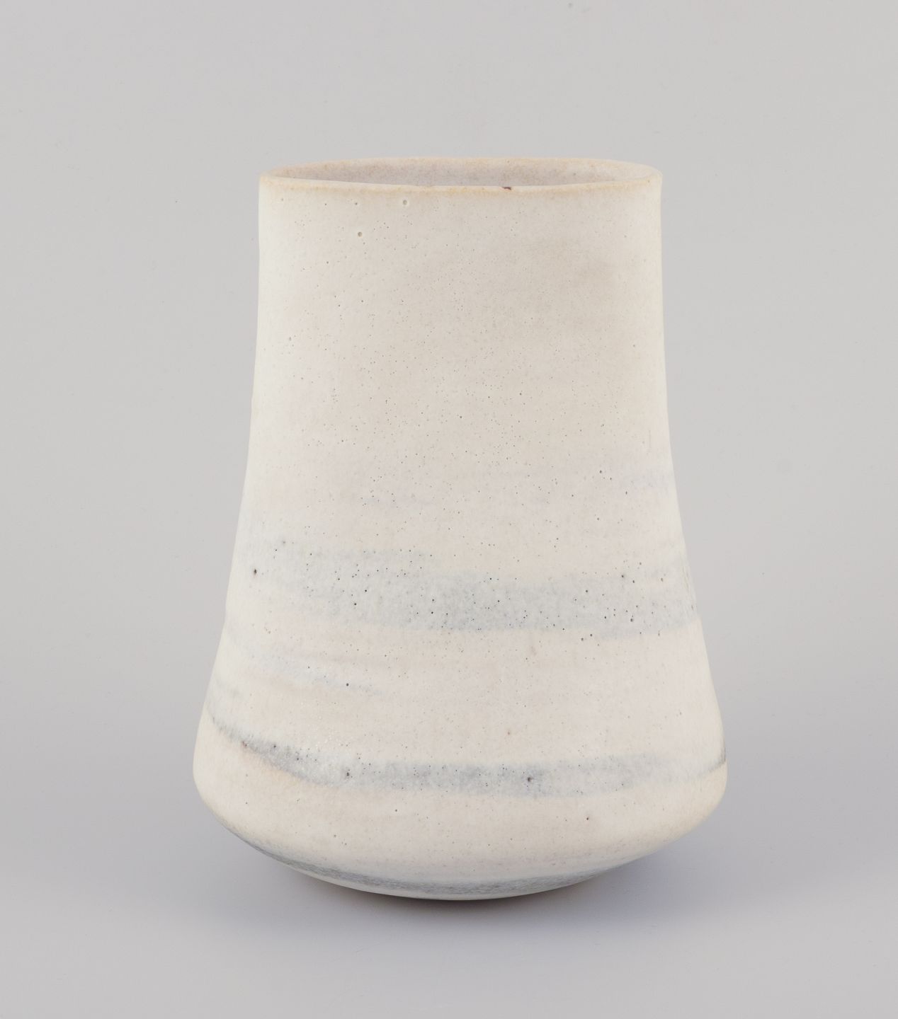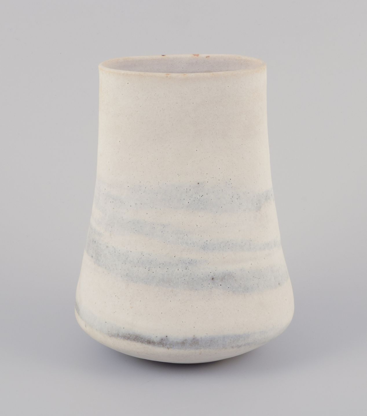 Stor modernistisk unika vase i glaseret stentøj. Smuk glasur i sandfarvede nuancer.