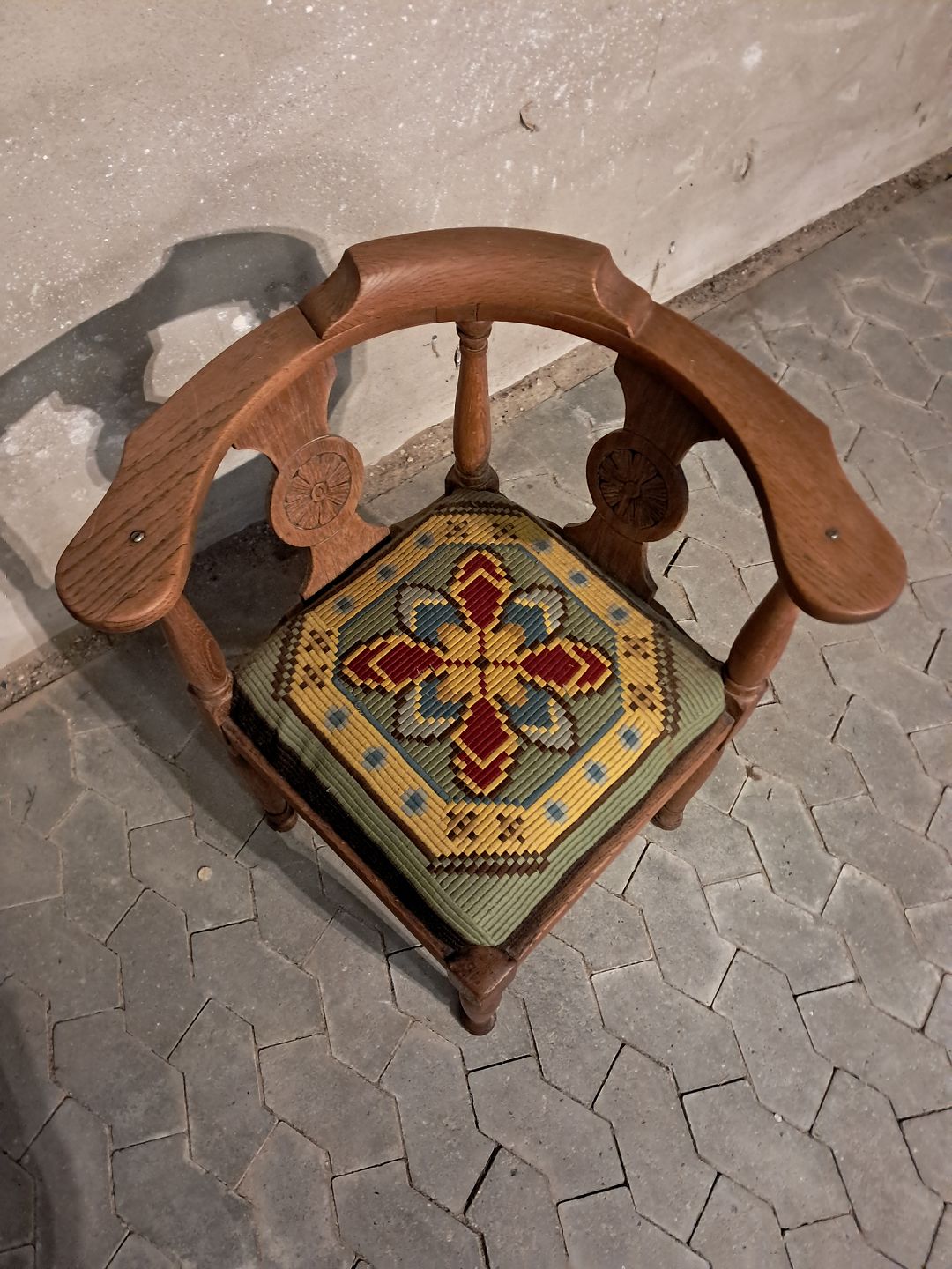 Armstol i massivt egetræ, fra 1910erne.