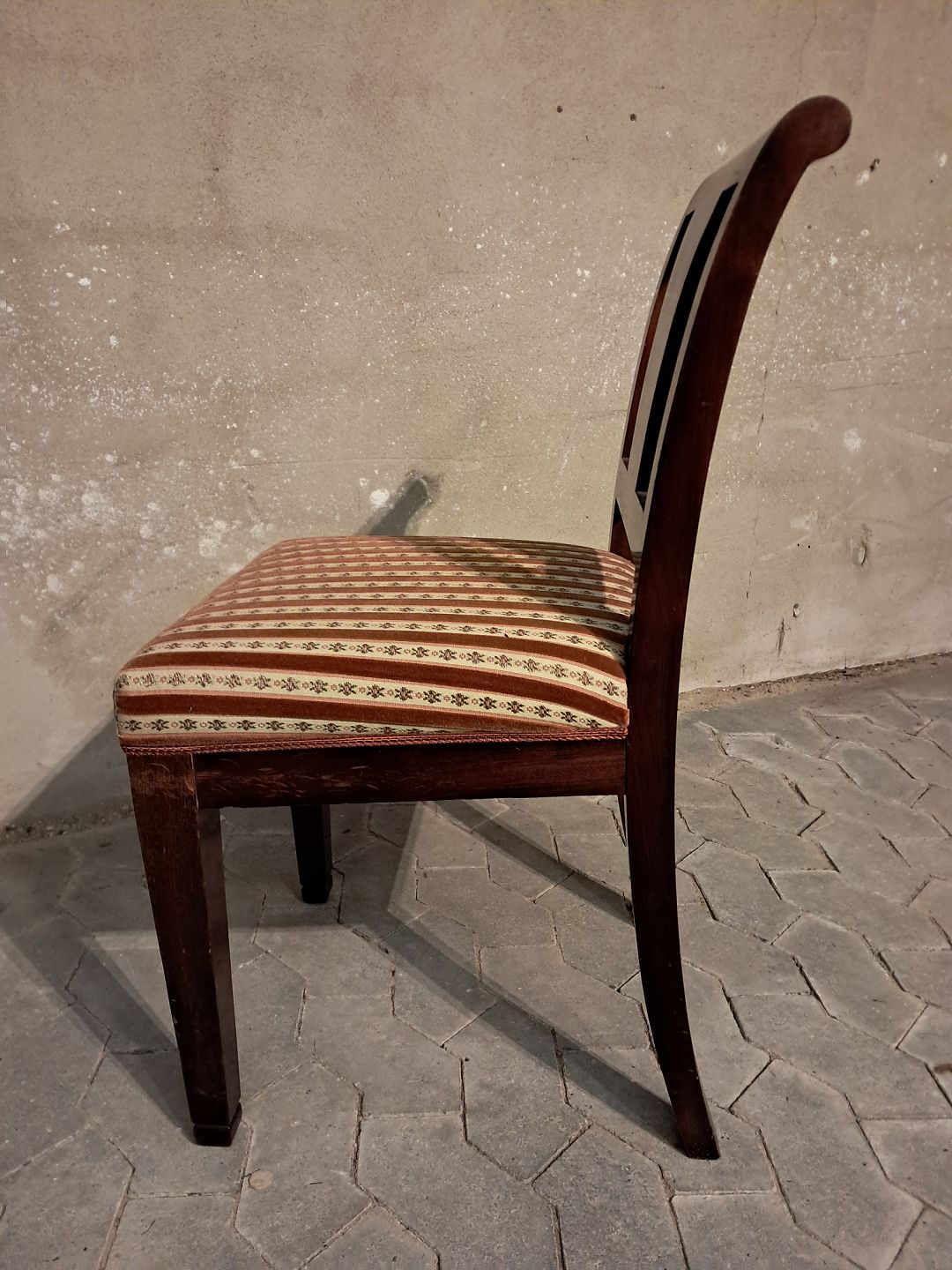 Salonstol i massivt mahogni med velourbetræk, fra 1910erne.