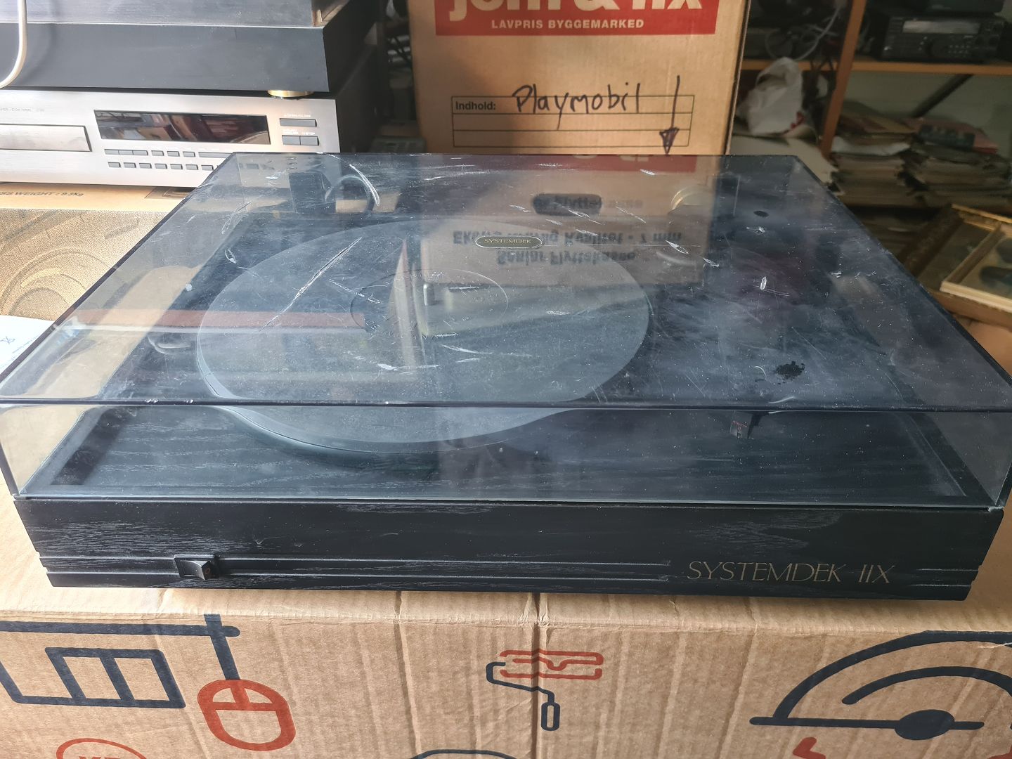 Vintage pladespiller fra SYSTEMDEK model IIX. Spiller helt fint. Kommer med en Scorpio tonearm og Goldring Elektro II pick-up. Cover har lidt brugsspor der ligner flænger, men ikke er det.