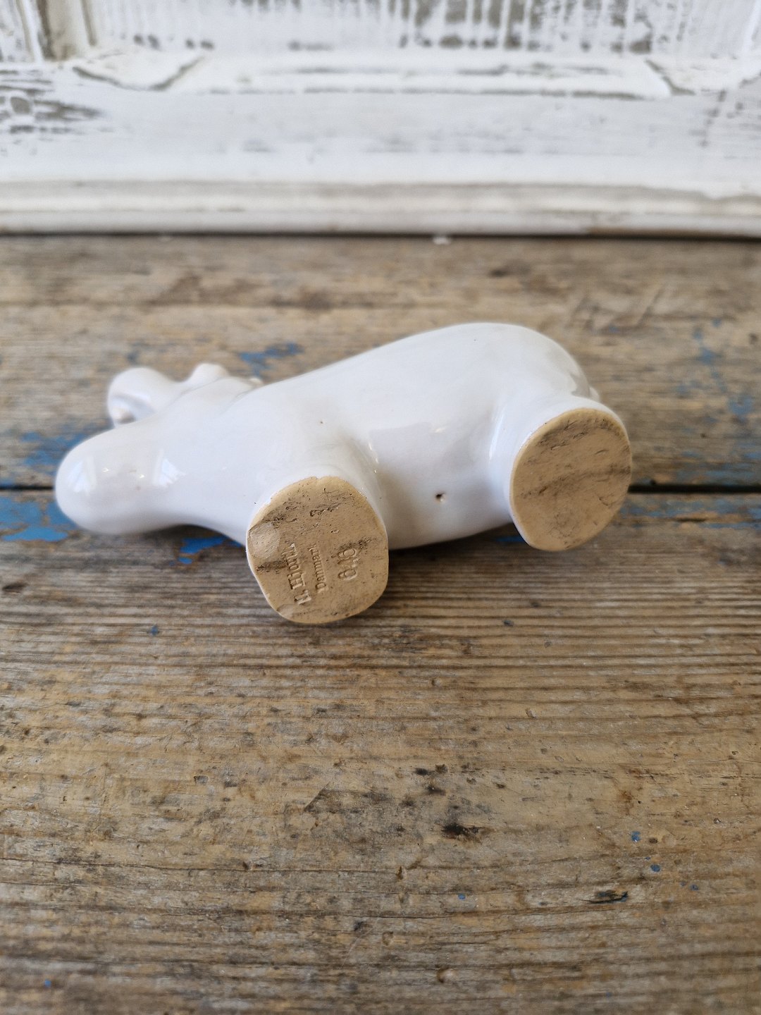 Hjorth figur - flodhest i hvid glasur no. 646