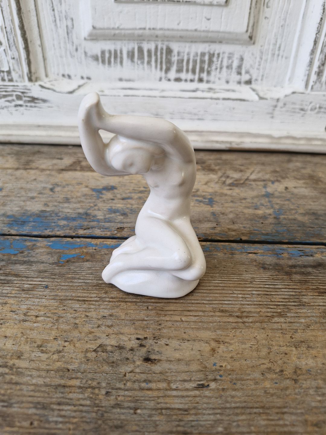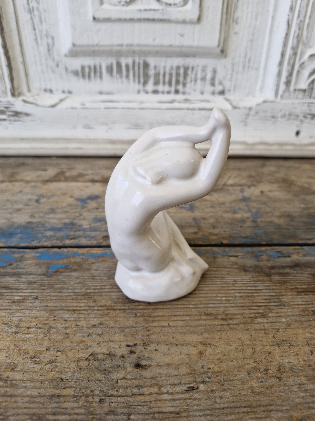 Hjorth figur - kvinde i hvid glasur