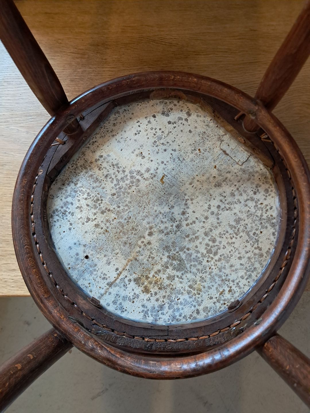 Den rokker lidt og har brugsspor.