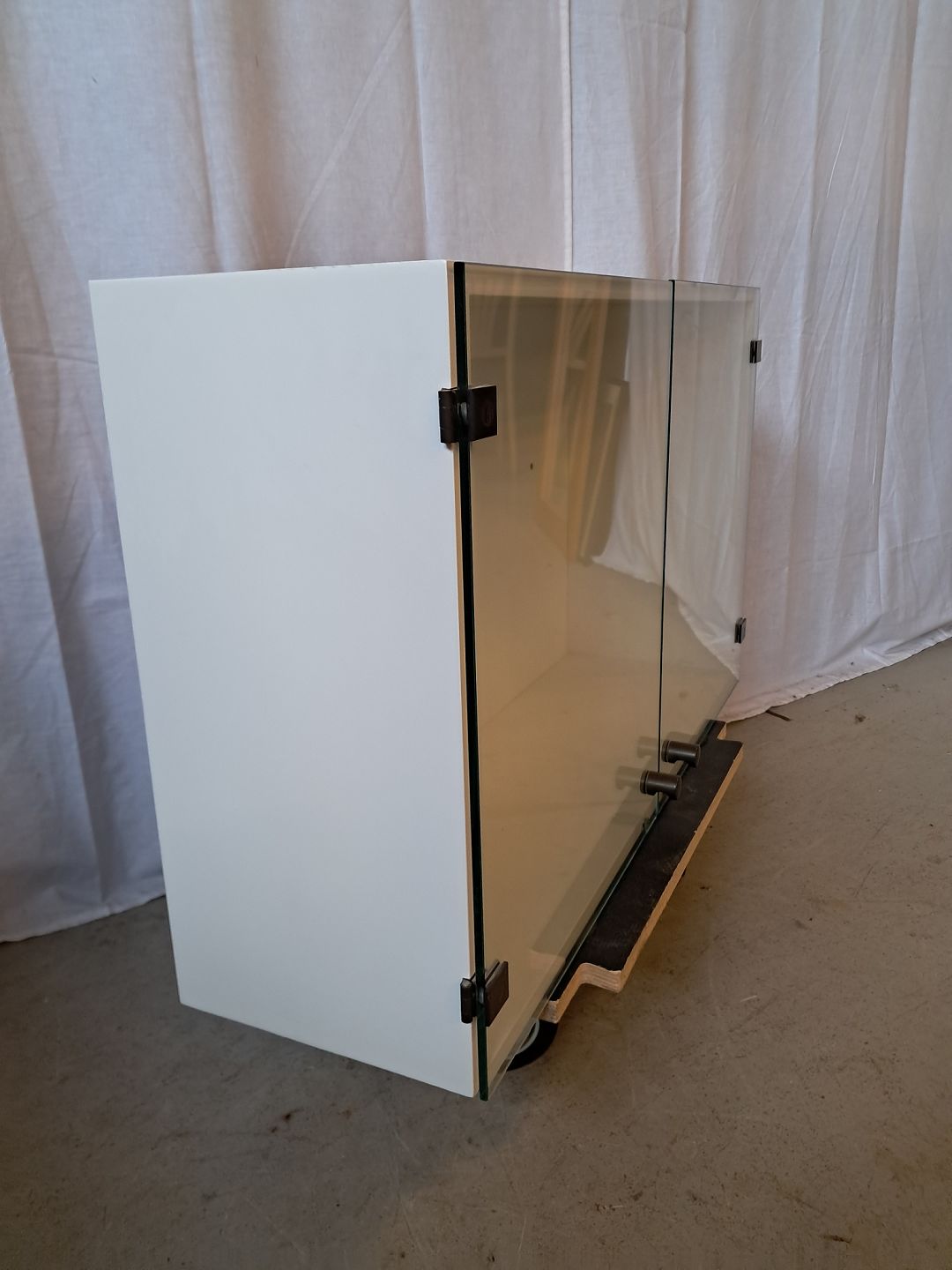 Vægskab med glaslåger, af nyere dato.