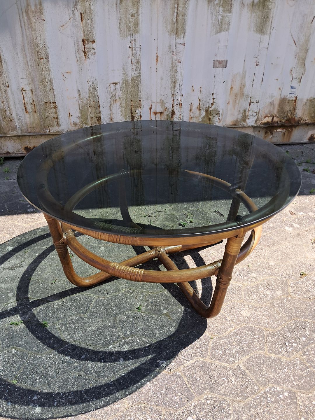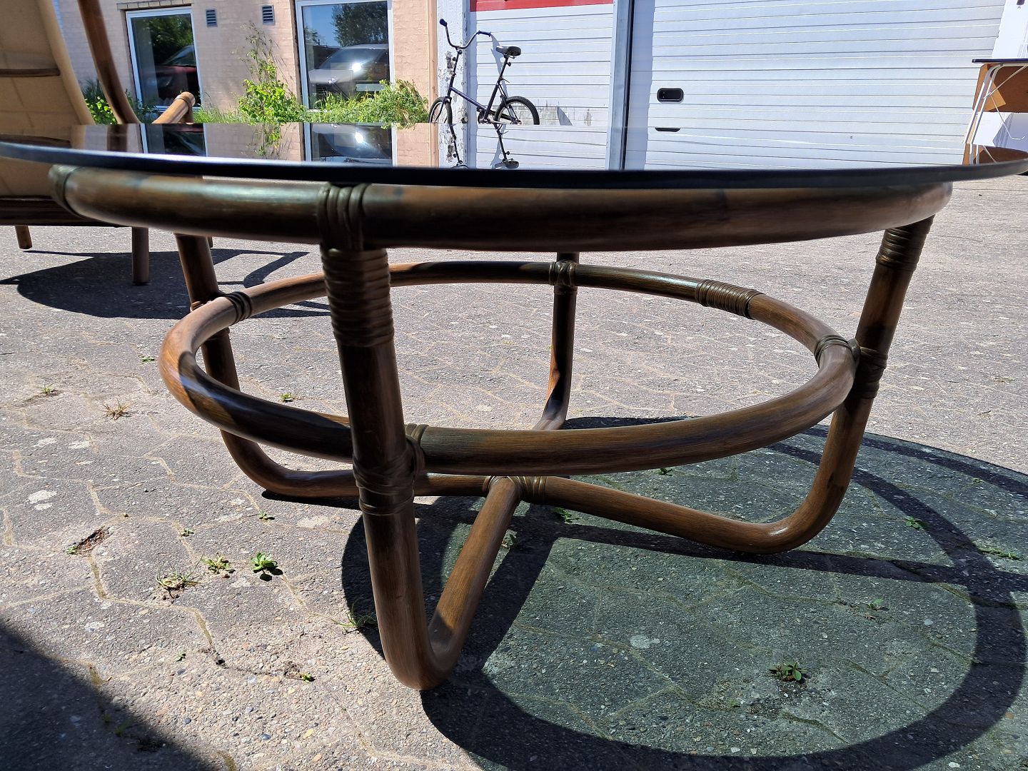 Sofabord i bambus med glasplade, fra 1990erne.