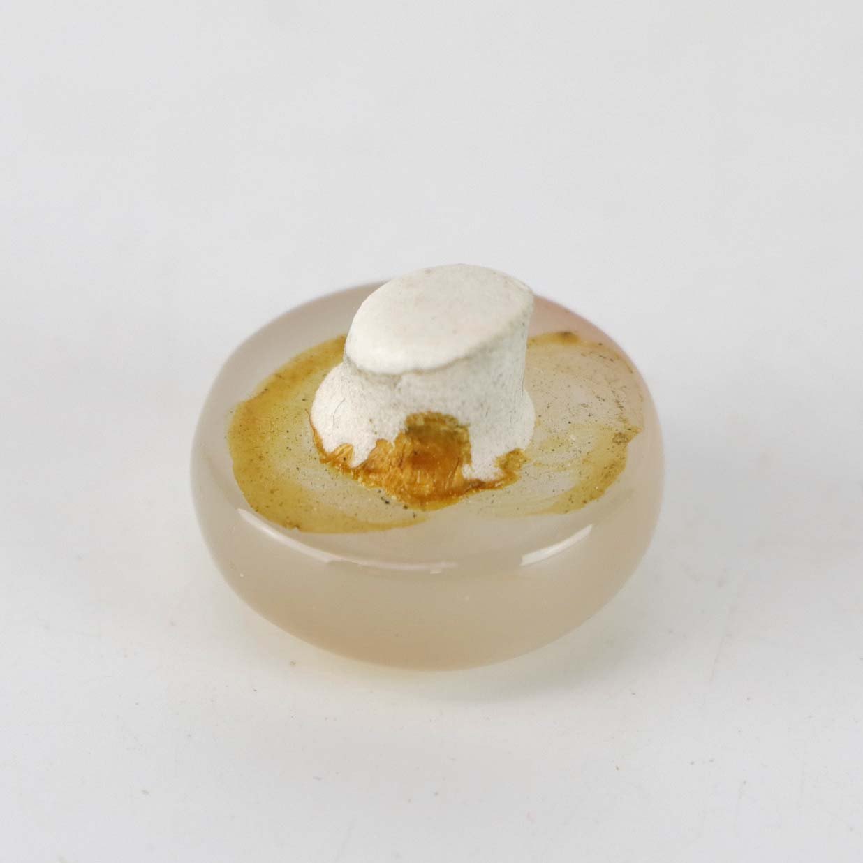 Fremstår med spor af lim på proppens underside.