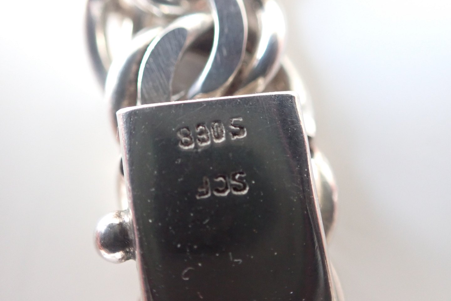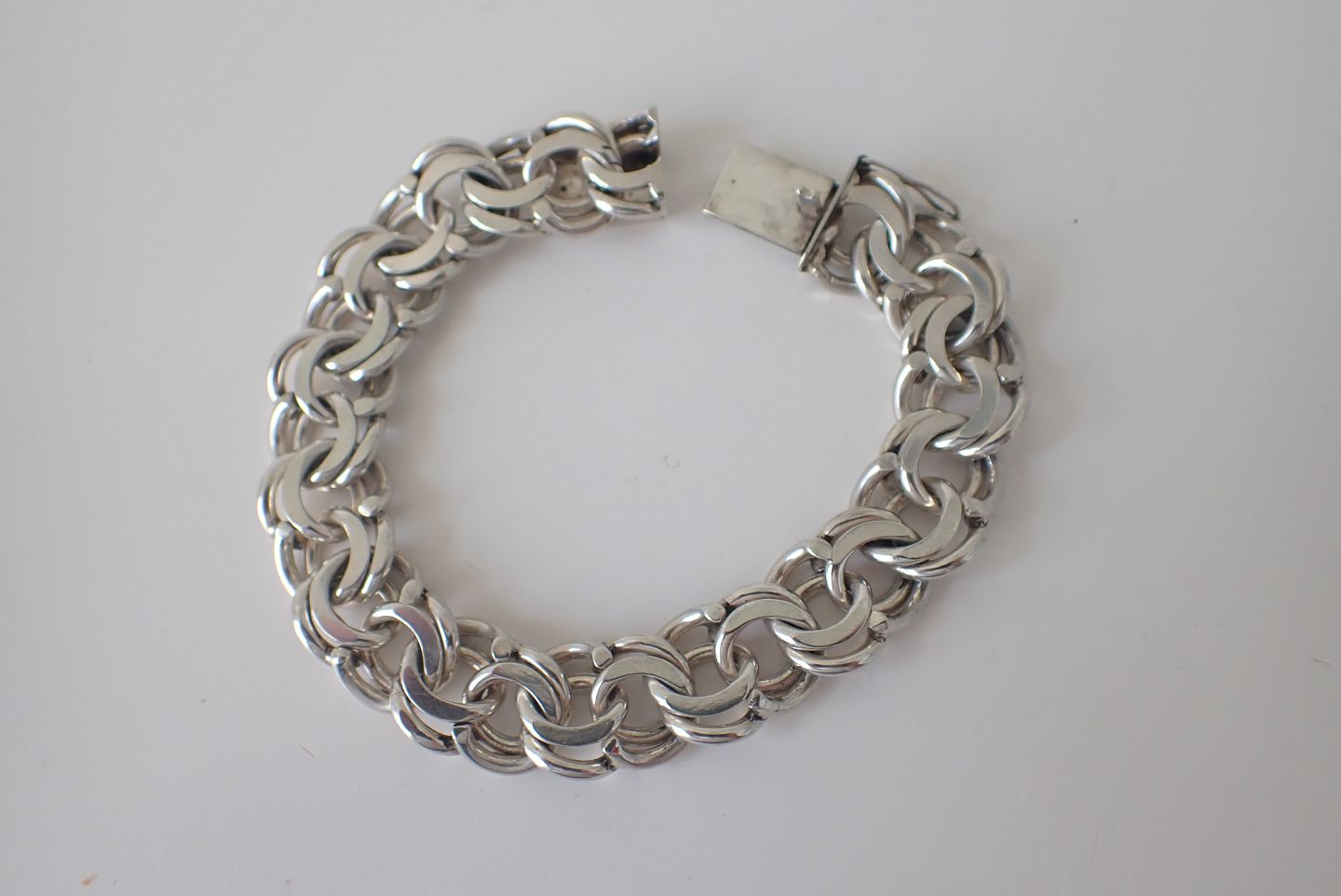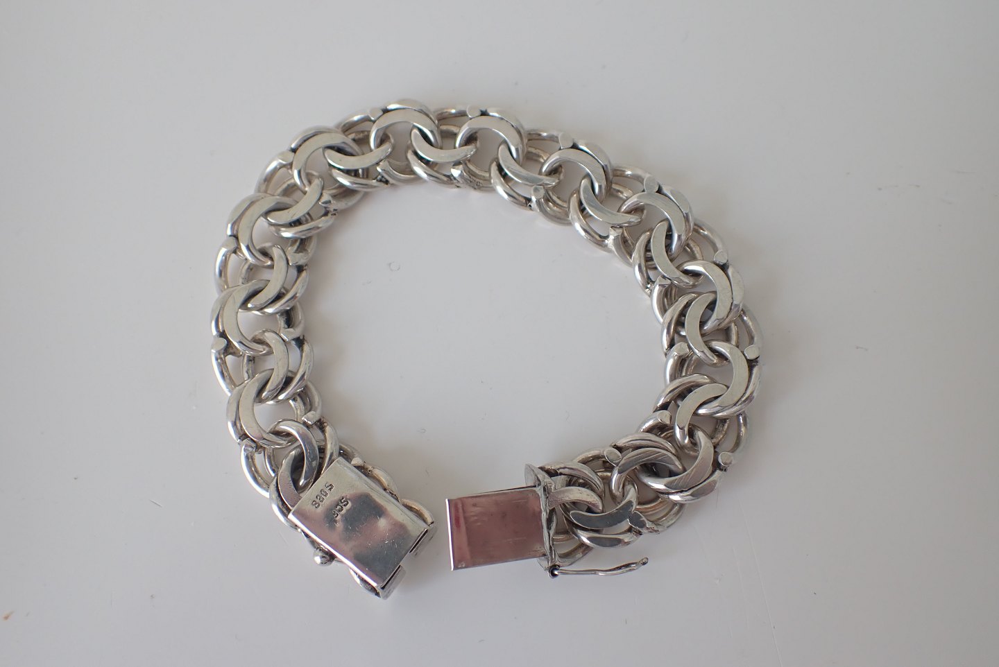 Kaftig Bismarck armlænke i 830 sølv udført af S.Chr. Fogh, Kbh. (1947 - 1973), Monteret med kasselås med sikkerhedshasp. Vægt: 48,8 gram. Længde: 19,5 cm. Bredde: 1,4 cm. I fin stand med meget lette brugsspor.