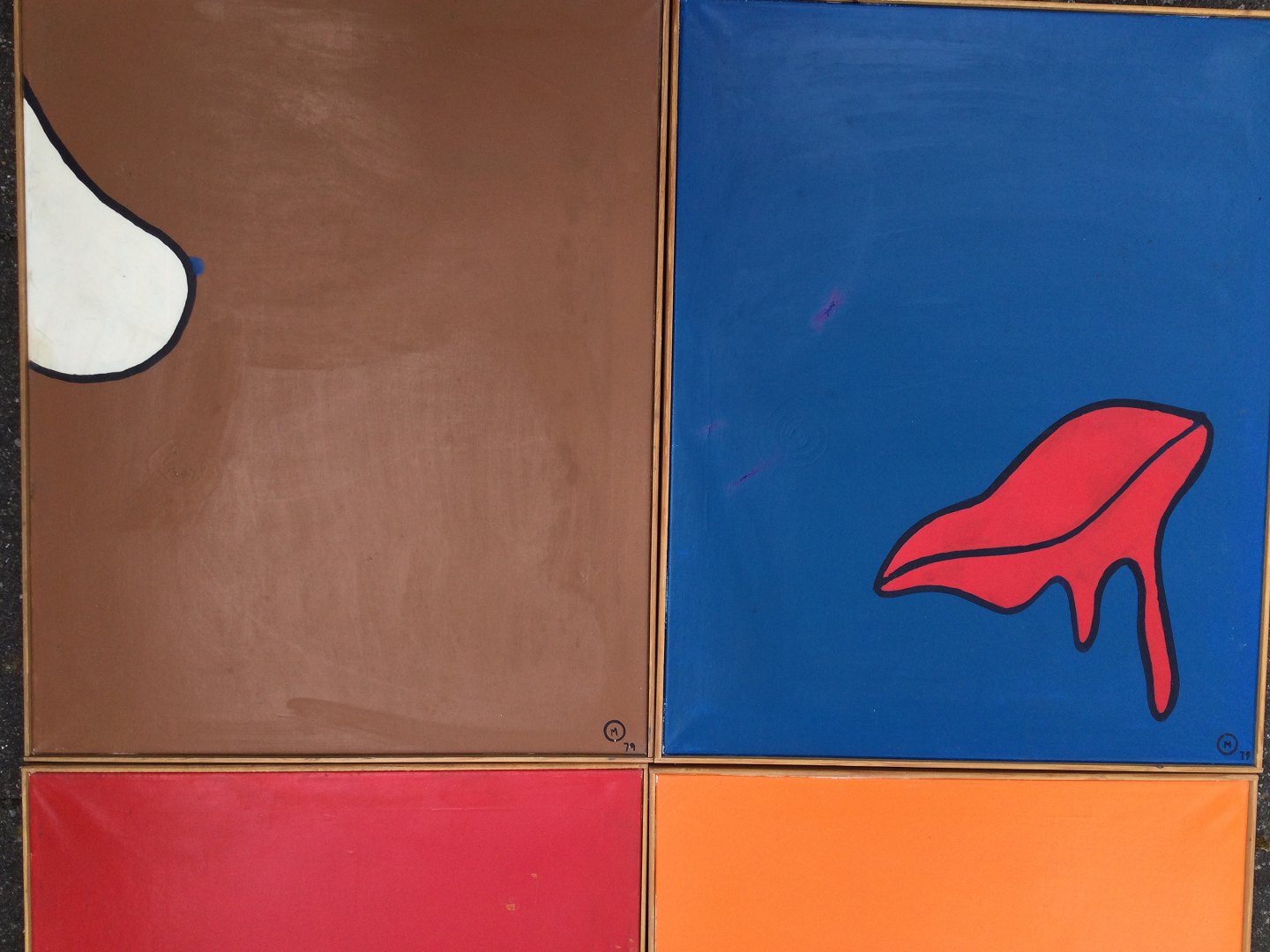 4 kompositioner i brunt, blåt, rødt og orange 1979