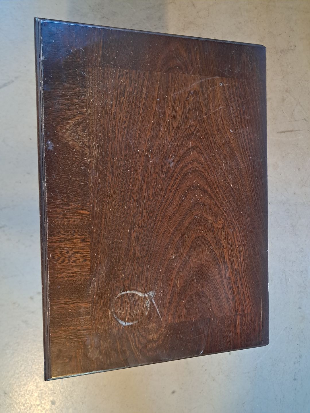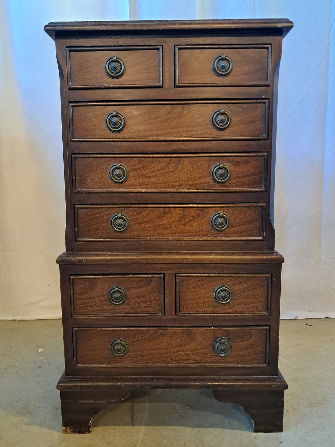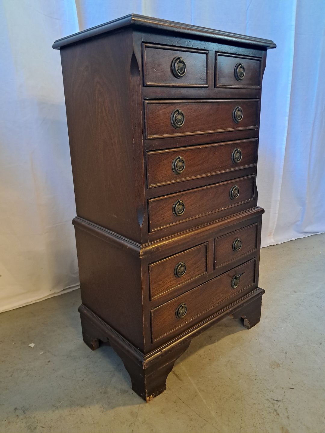 Lille kommode i fineret mahogni, fra 1980erne.
