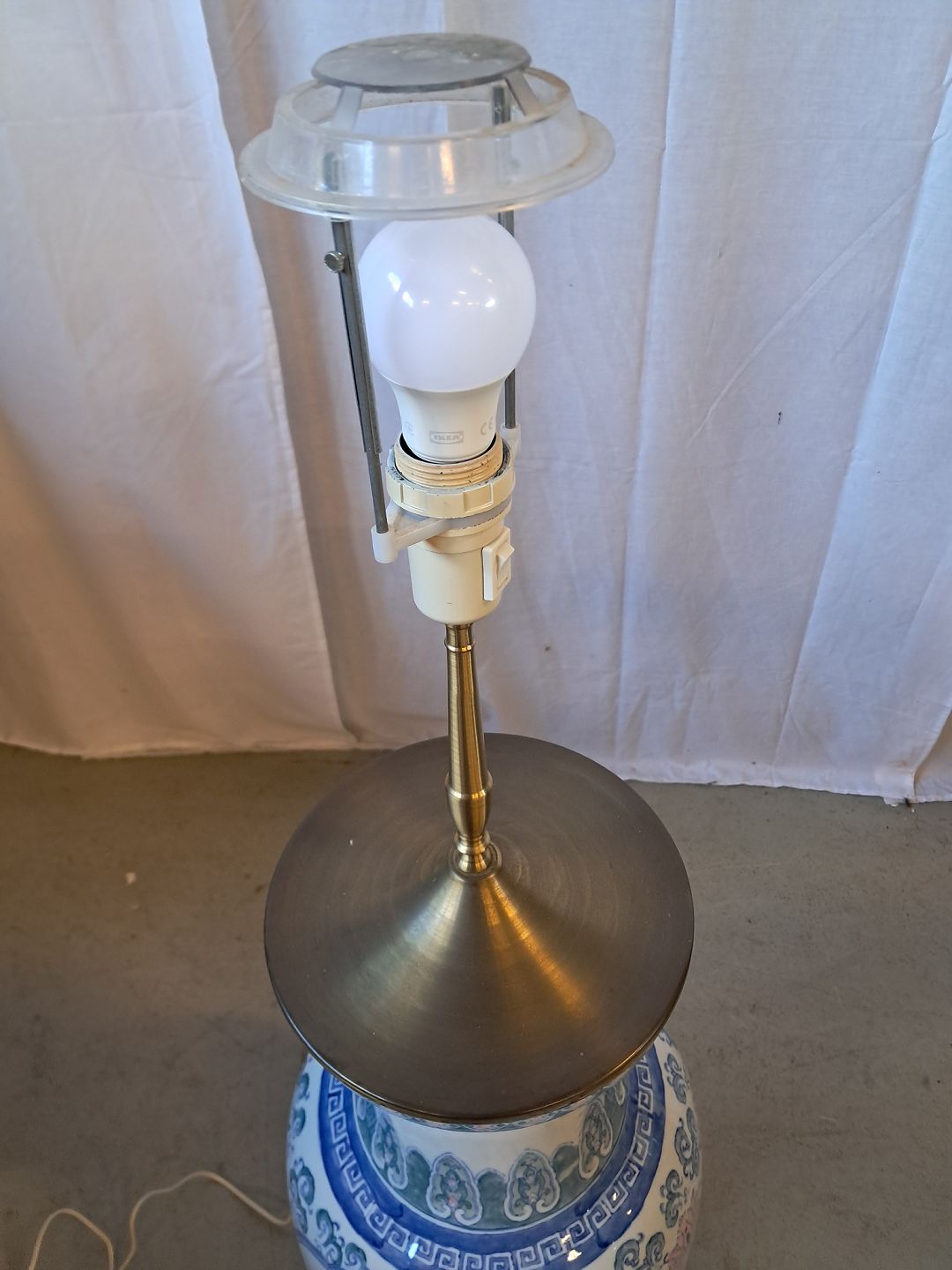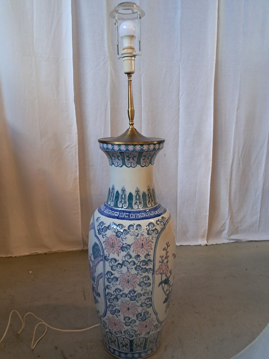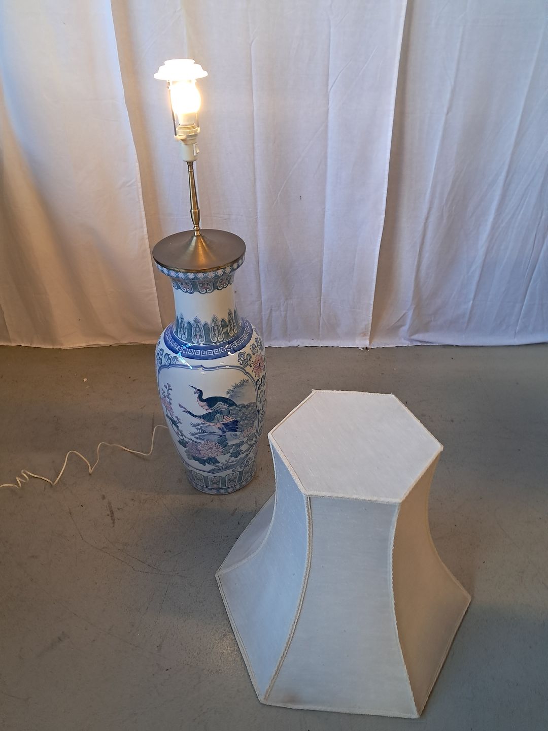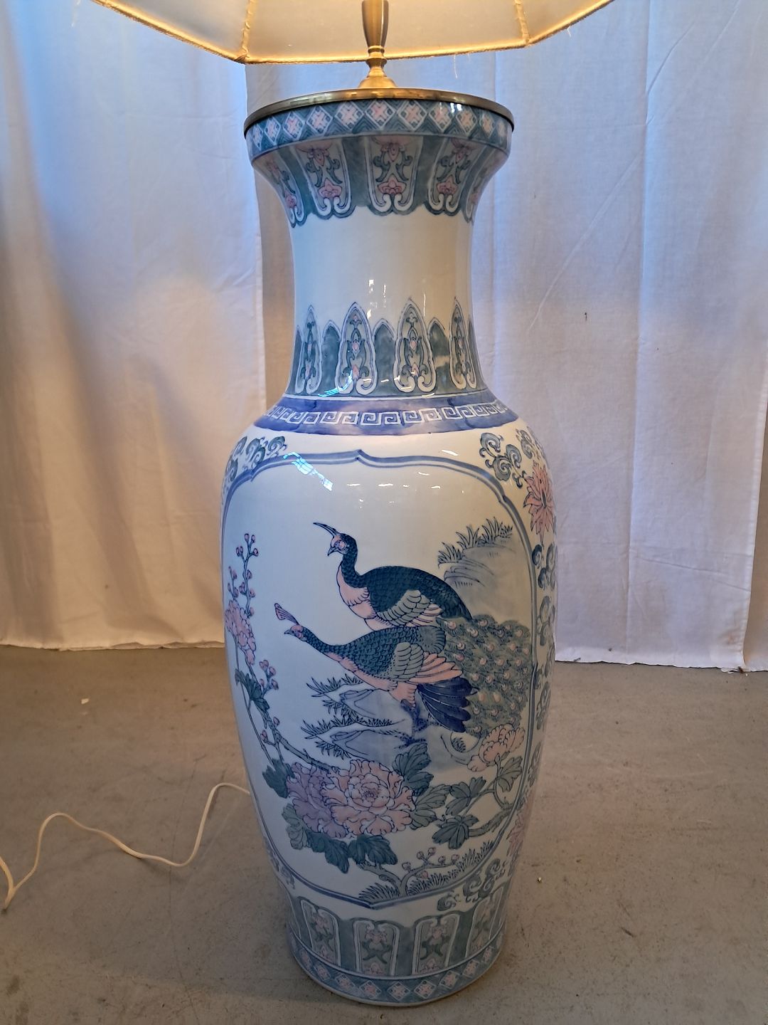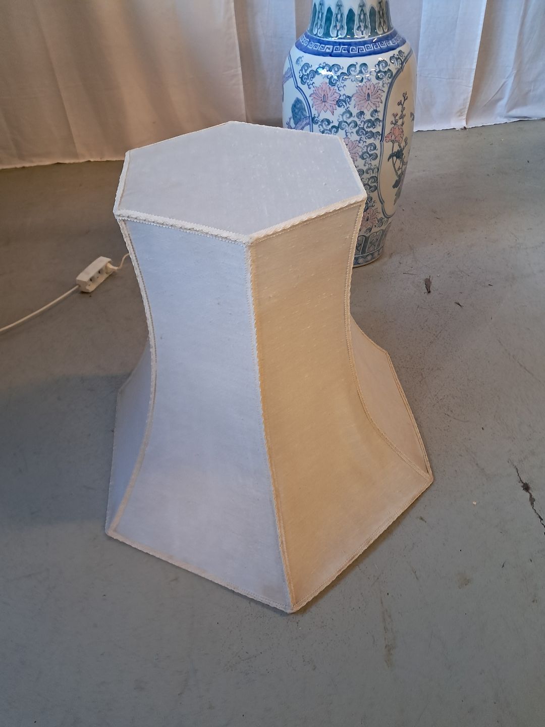 Gulvlampe i pocelæn med lampeskærm, fra 1990erne.