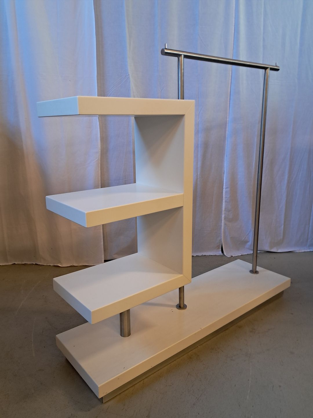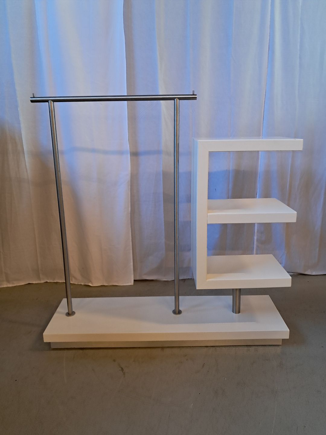 Sko og tøjstativ i metal og laminat, fra 2000erne.