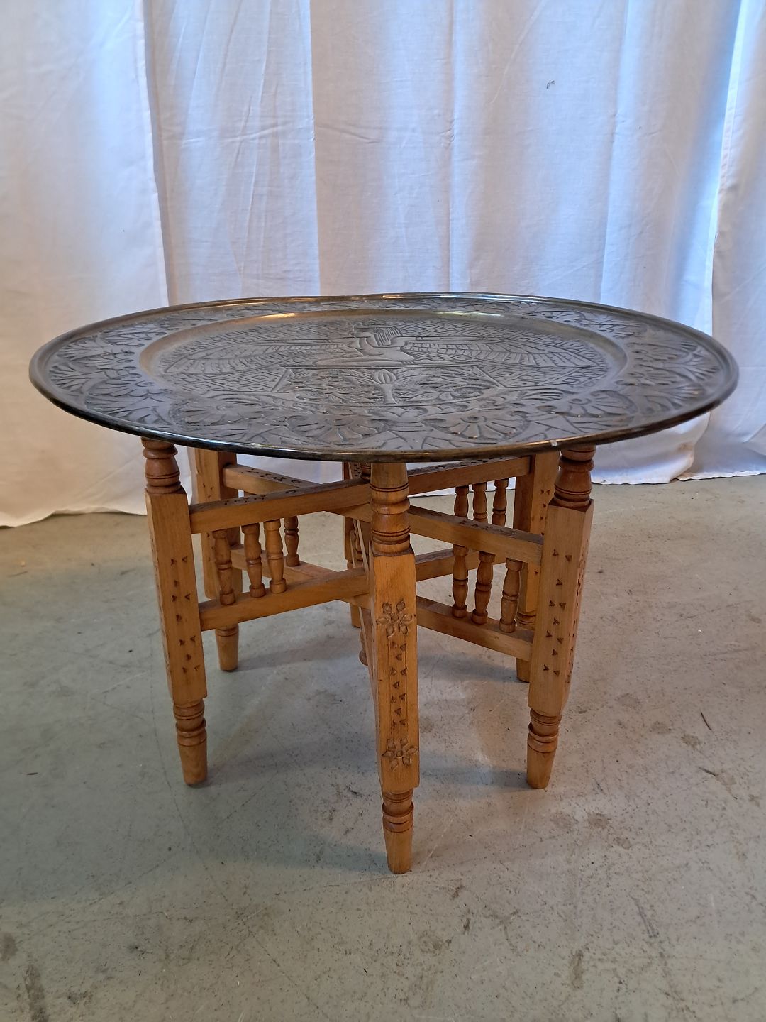 Egyptisk sidebord i massivt træ med metalplade, fra 1990erne.