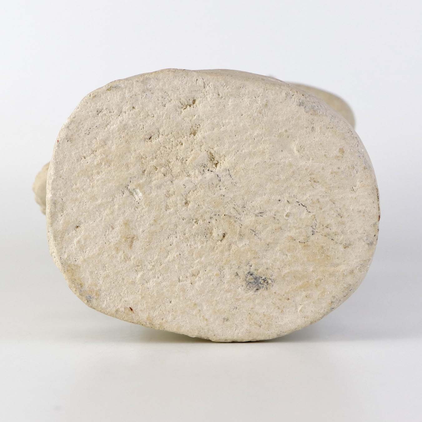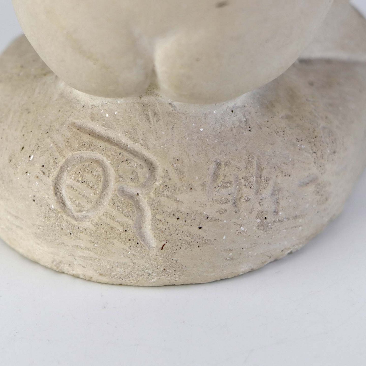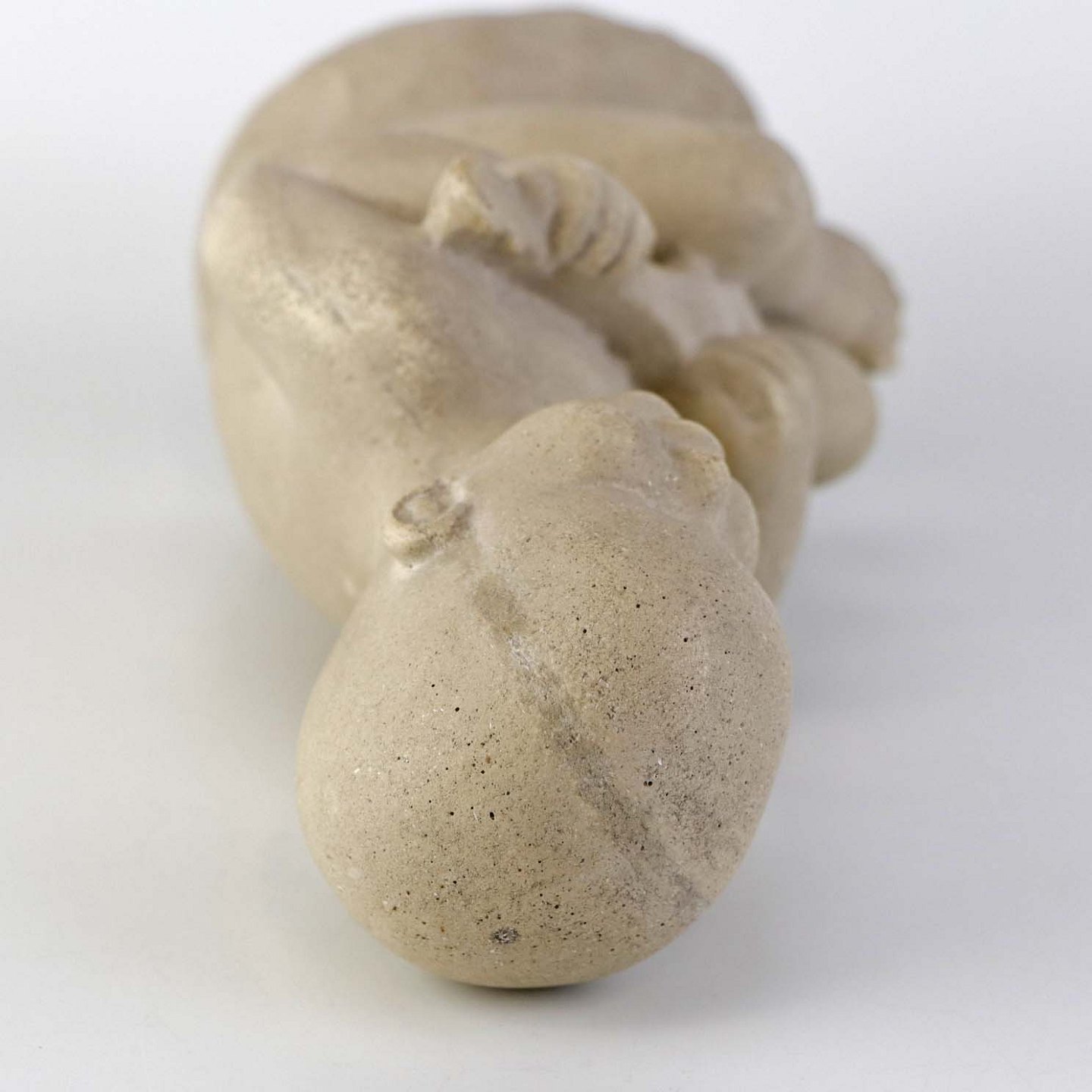 Figur i sandsten med motiv af siddende dreng med citar. Nr. 44-2