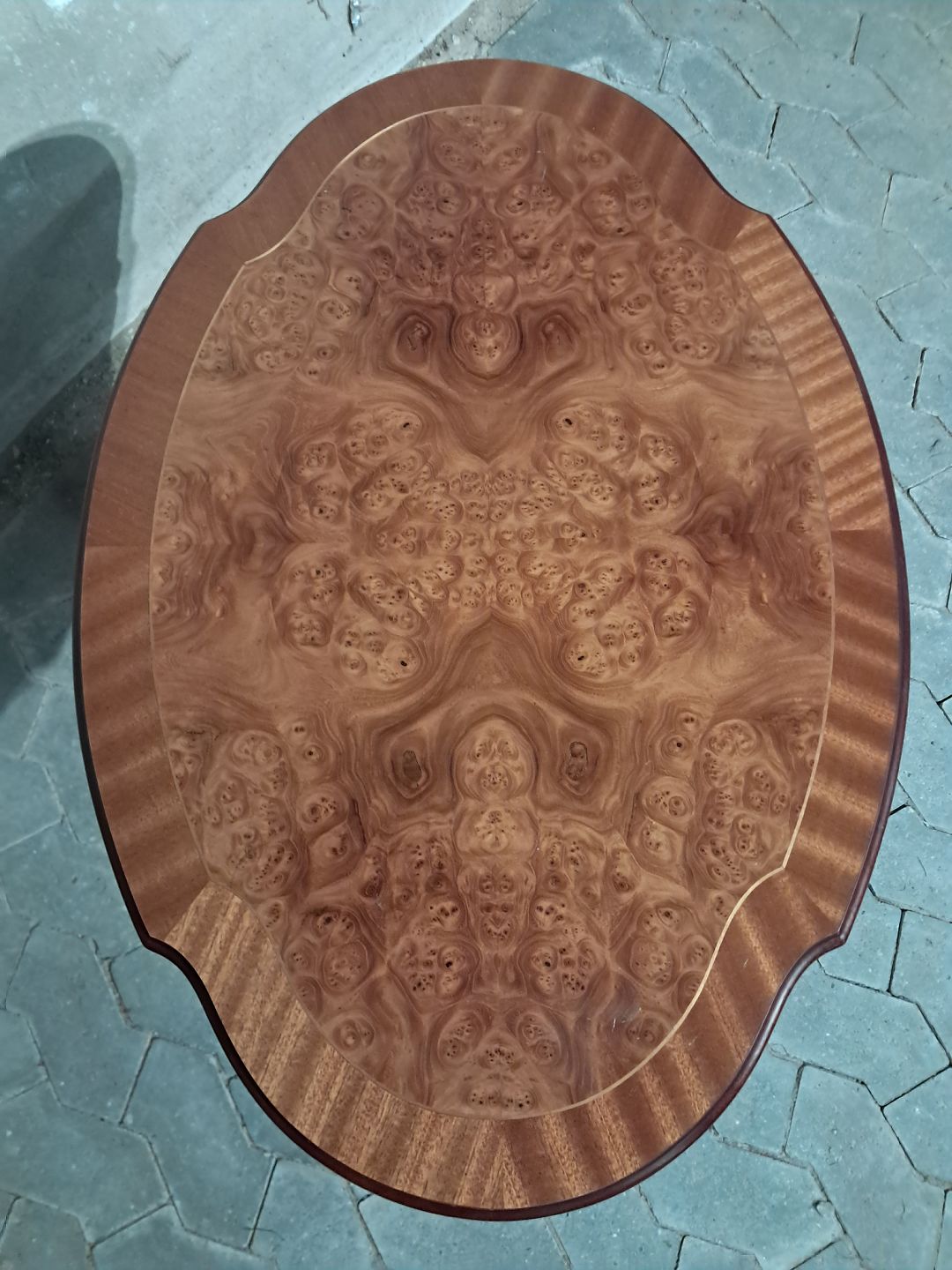 Lampebord i fineret mahogni, fra 1990erne.