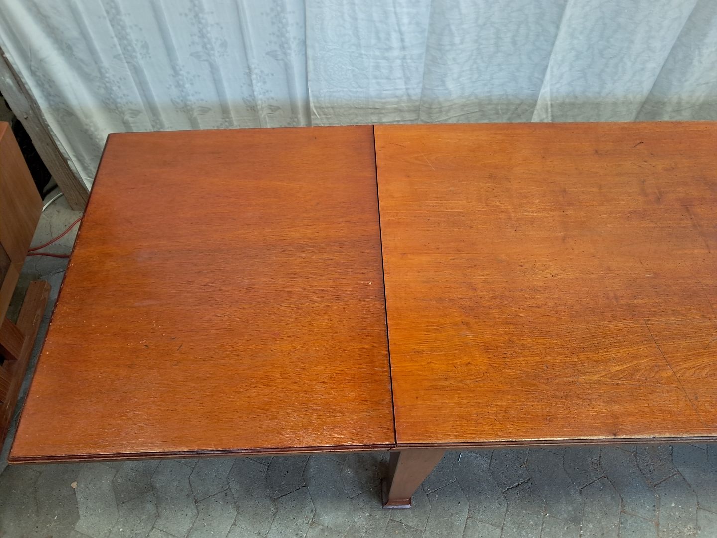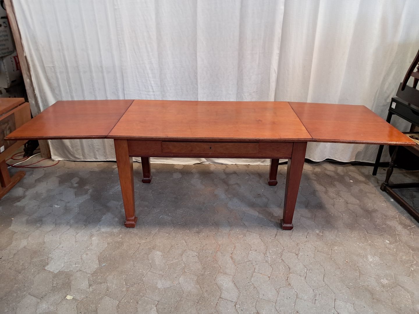 Bord i fineret bøgetræ med skuffe og klapper, fra 1920erne.