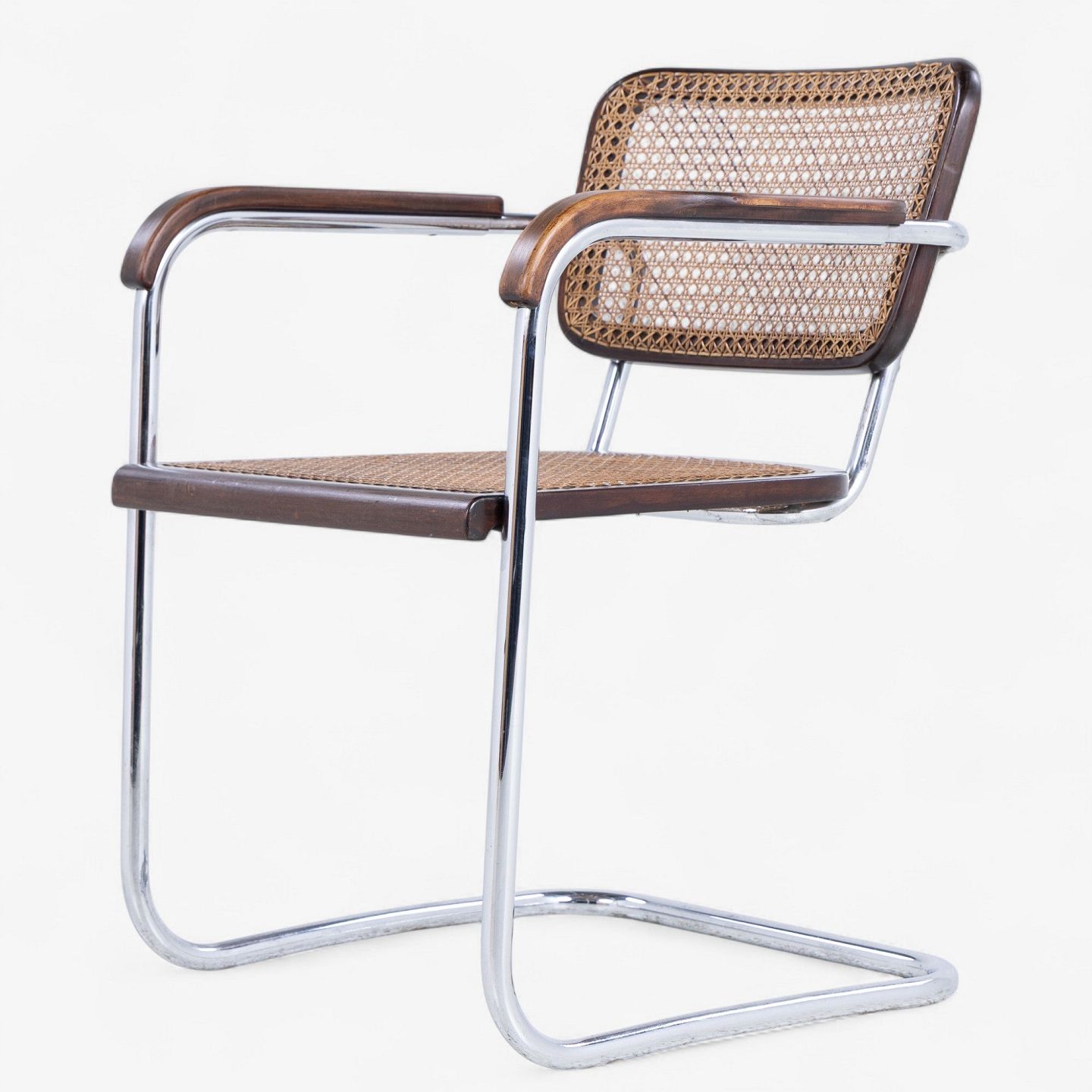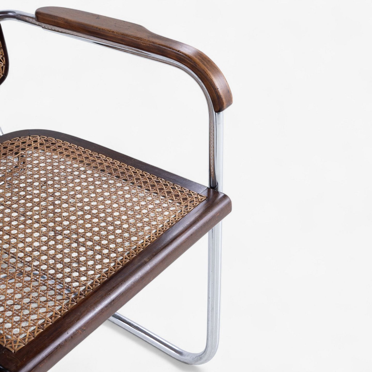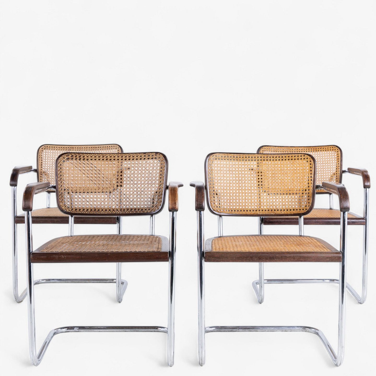 FH 6107 - Sæt á fire armstole i stål, bejdset bøg og originalt fransk flet. Formgivet i 1934.