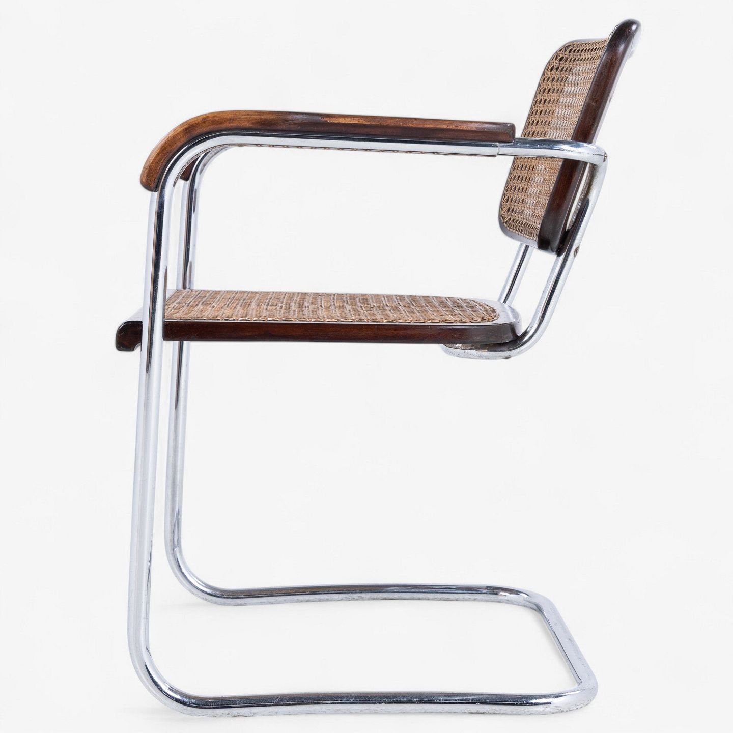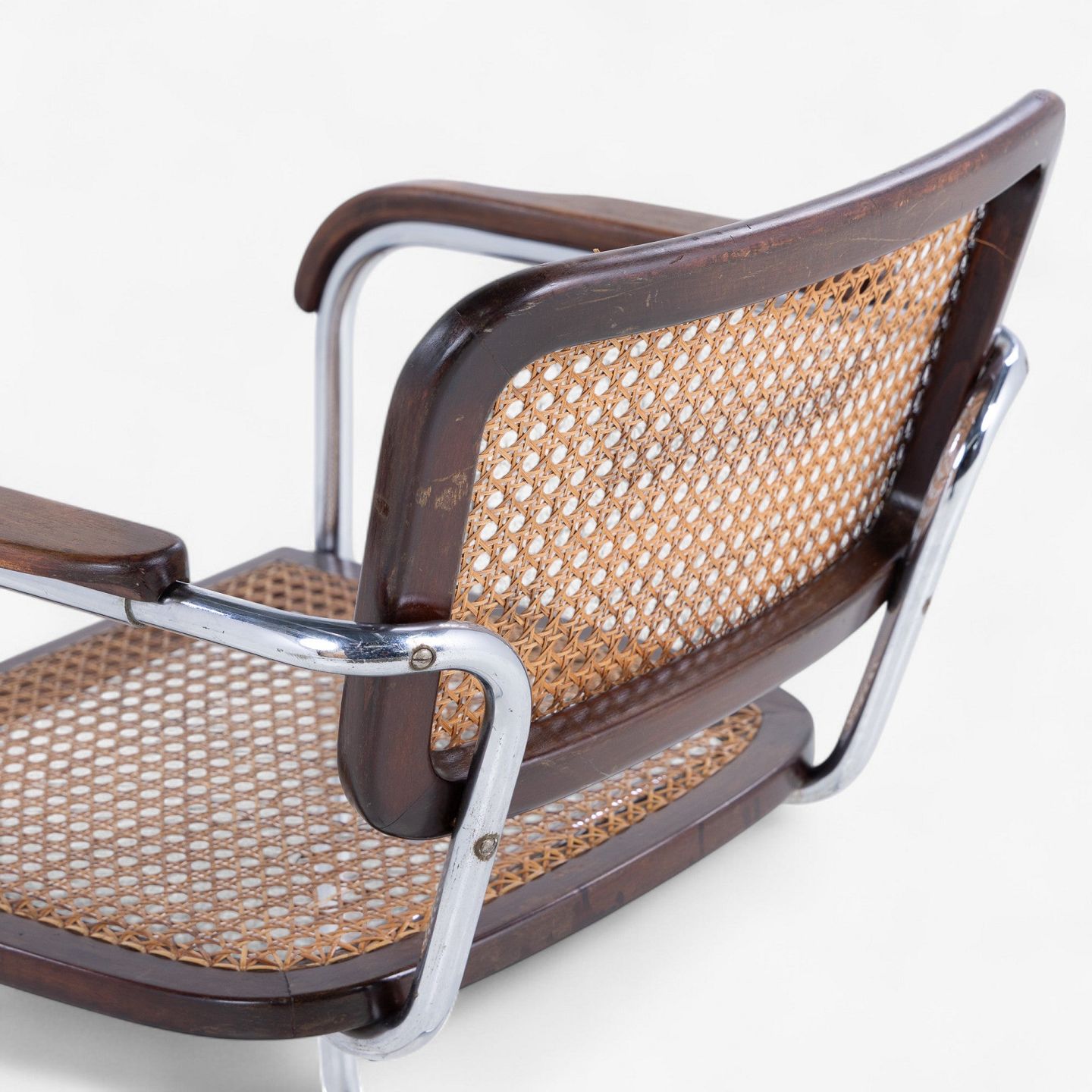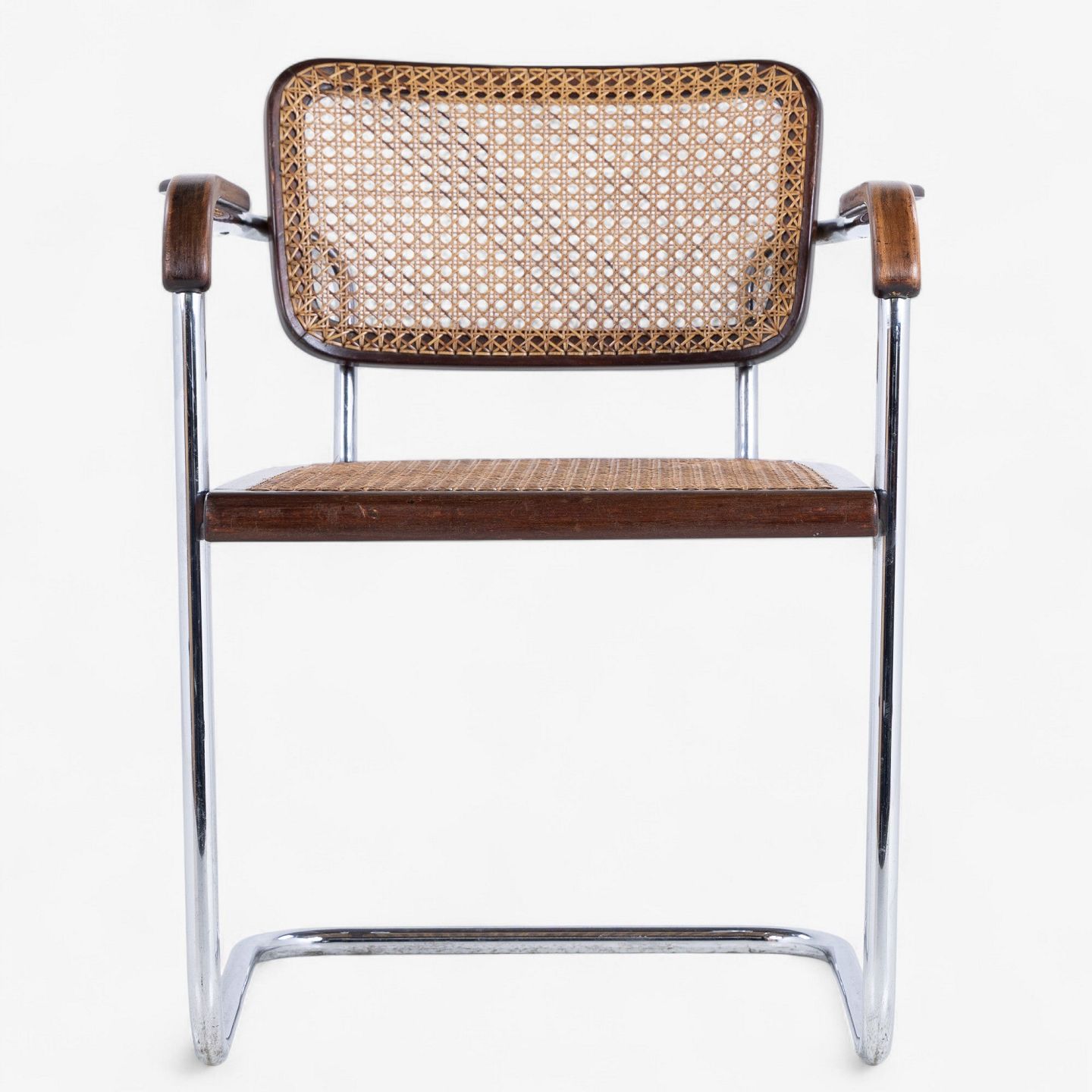 FH 6107 - Sæt á fire armstole i stål, bejdset bøg og originalt fransk flet. Formgivet i 1934.
