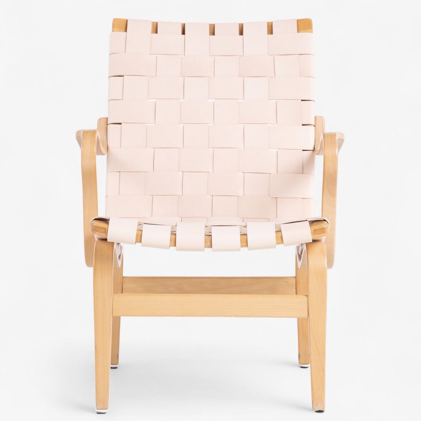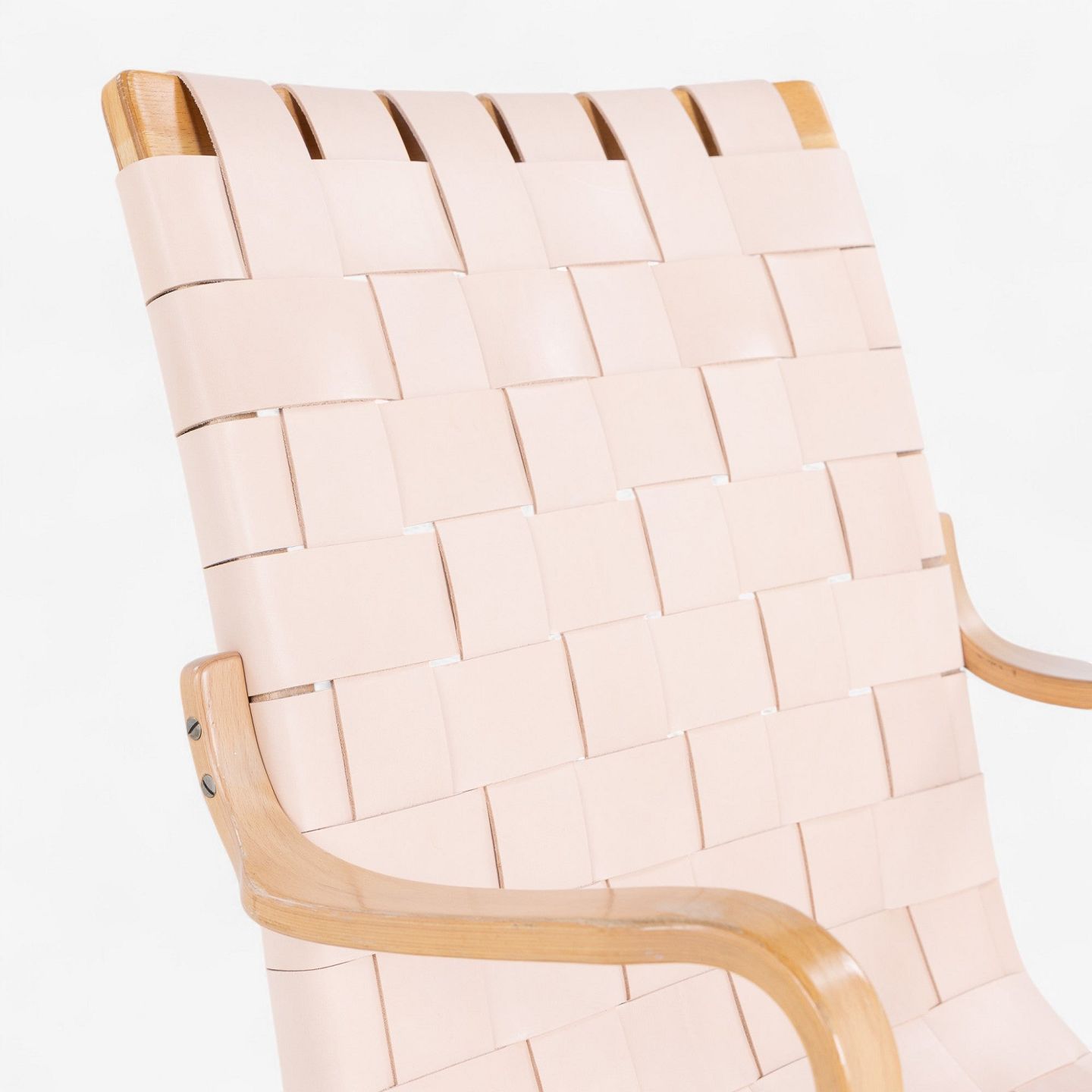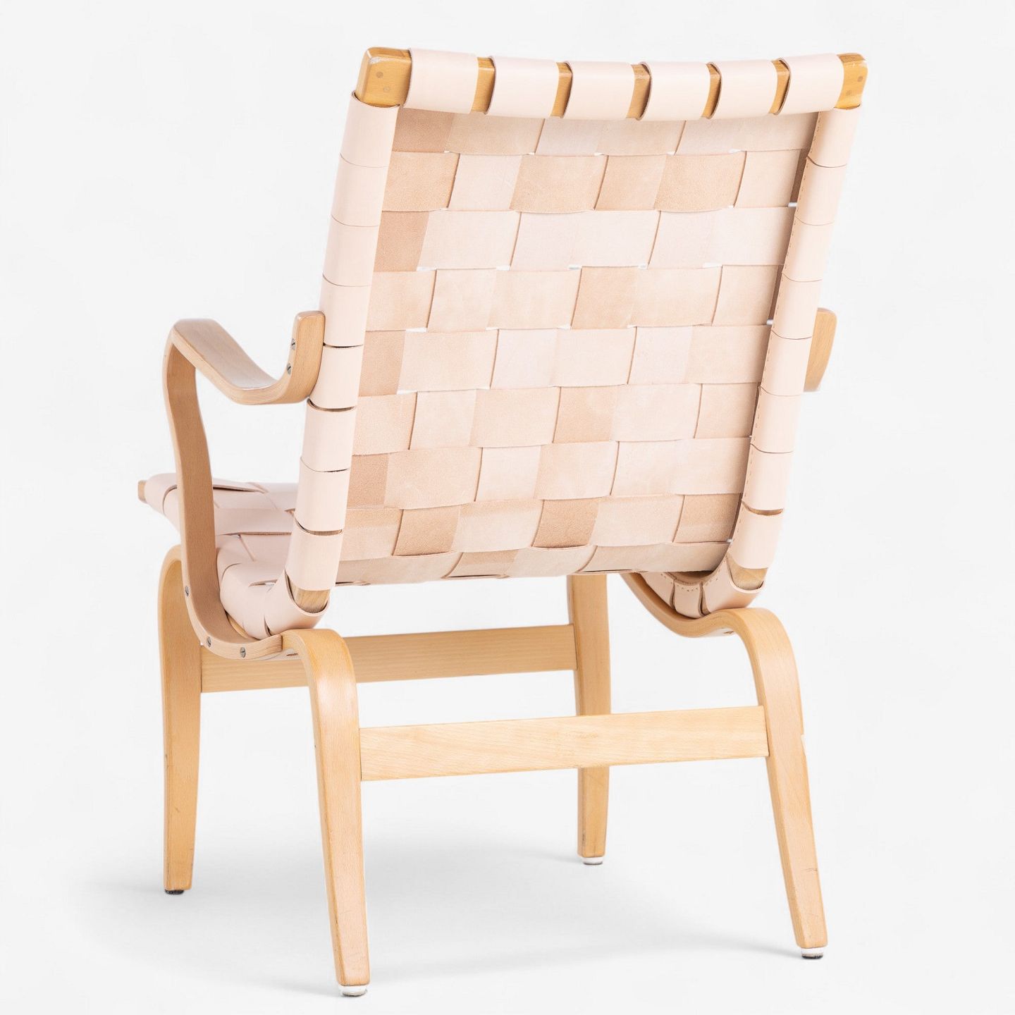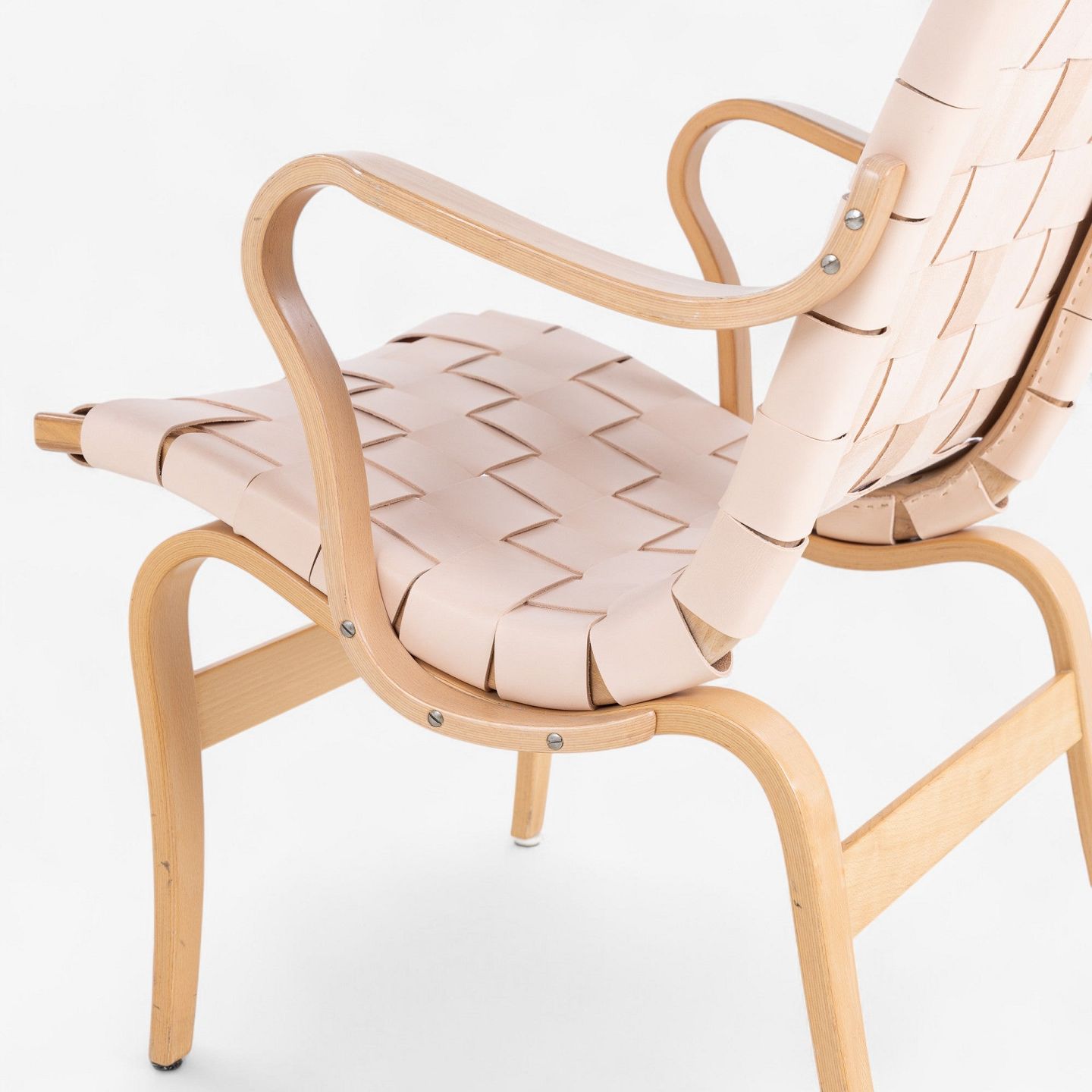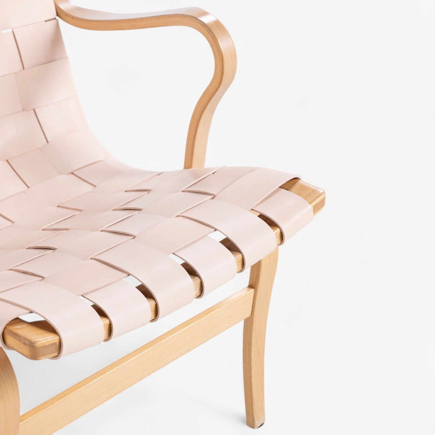 'Eva'-lænestol i patineret bøg med nyt flettet natur kernelæder.. Mærket fra producent.
